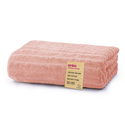 Anko Australia 100% Cotton 700 GSM Large Ribbed Bath Towel | Set of 1 | Super-Soft, Absorbent, Quick-Drying | Pink Towel for Men, Women & Kids | 135x68 cm |Travel, Gym, Spa Towel