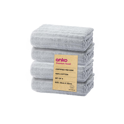 Anko Australia 100% Cotton 700 GSM Ribbed Face Towel | Set of 4 | Super-Soft, Absorbent, Quick-Drying | Grey Towel for Men, Women & Kids | 33x33 cm |Travel, Gym, Spa Towel