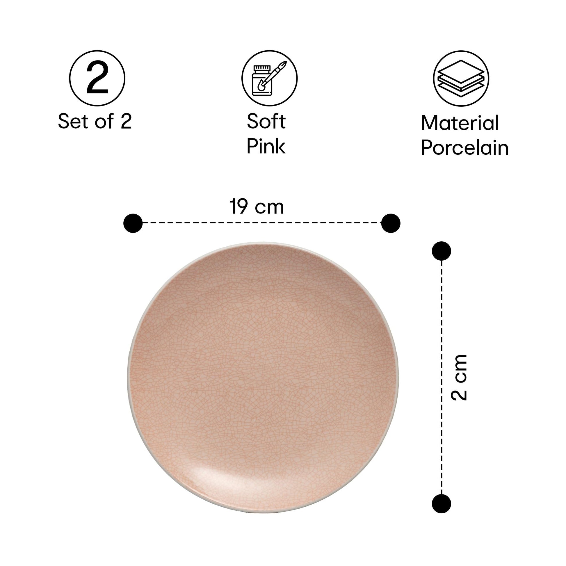 Bella Side Plate Set of 2| Side Plates for Kitchen, Dining, Restaurants| Ideal to Serve Salad & Appetizer| Microwave & Dishwasher Safe | Porcelain Dinnerware| 2cm (H) X 19cm (Dia.)|Soft Pink