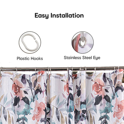 Floral Shower Curtain - Waterproof, Easy to Clean | 12 Hooks Included | 6 x 6 Feet | Multicolour