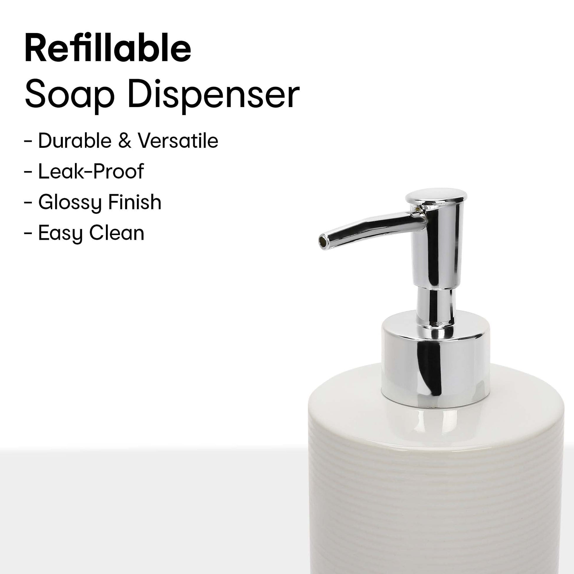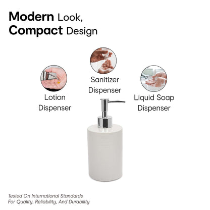 Liquid Soap Dispenser | Stoneware | Bathroom Sanitizer, Lotion, Shampoo Dispenser | Ceramic Liquid Soap Dispenser for Bathroom & Kitchen | Soap Dispenser for Wash Basin | Bathroom Accessories | White | 350 ml