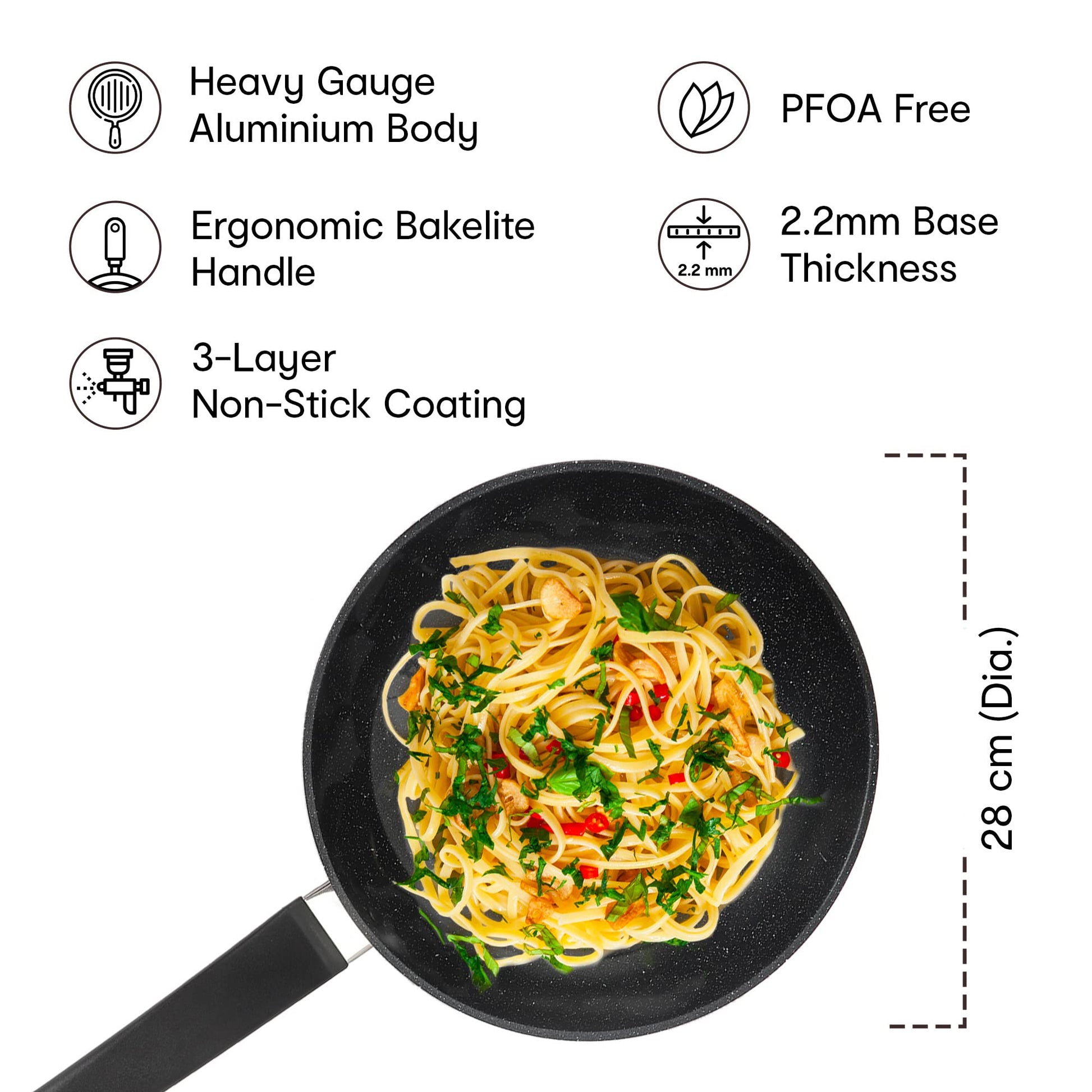 28cm Non-Stick Frying Pan - 3-Layer Coating | Gas & Induction Compatible | Black