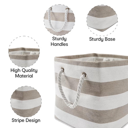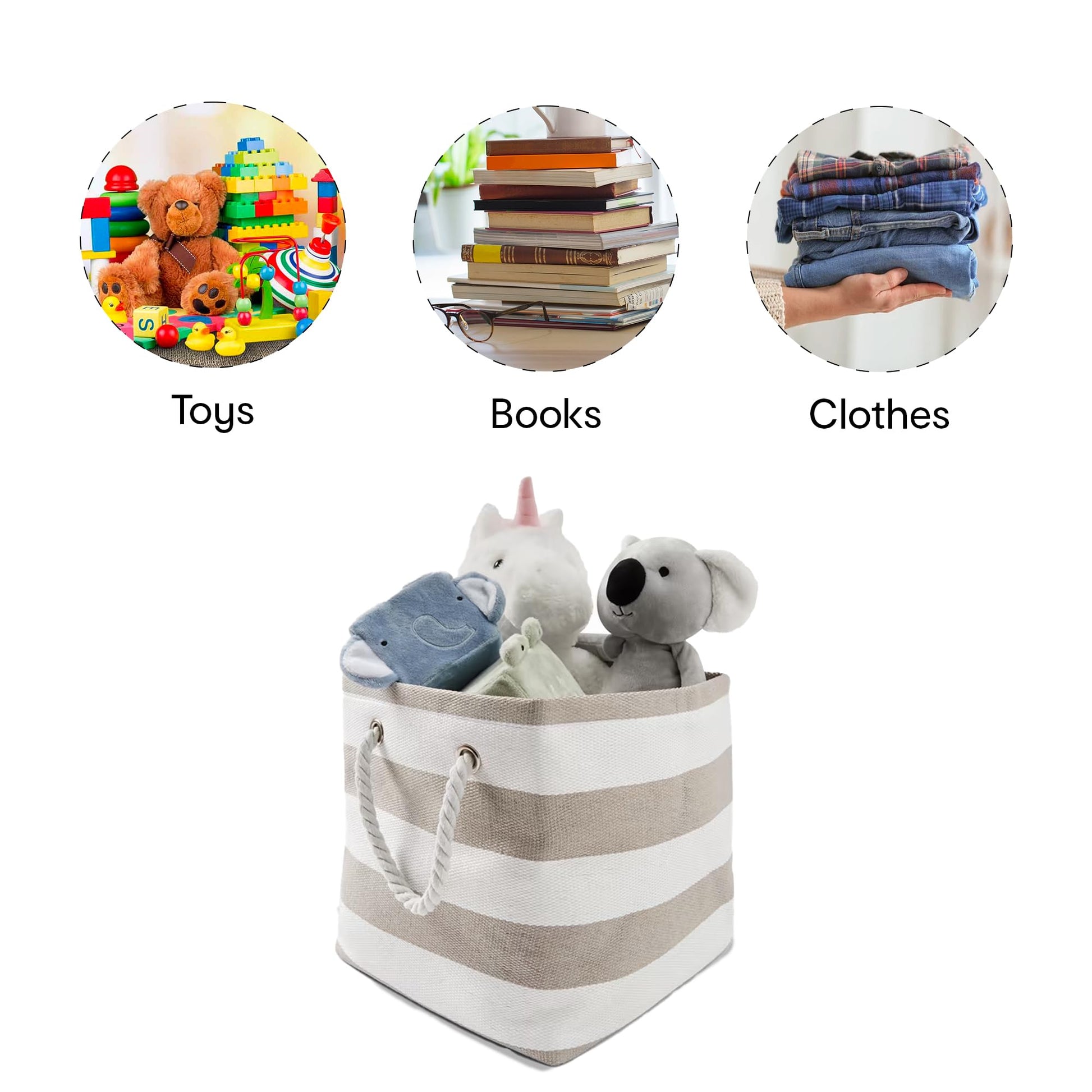 Paper cloth Foldable Storage Basket with Non-Woven Fabric Lining | Sturdy Durable Fabric | Striped Storage organiser with Carry Handles for Saree, Shirts, Woolens, Books, Toys