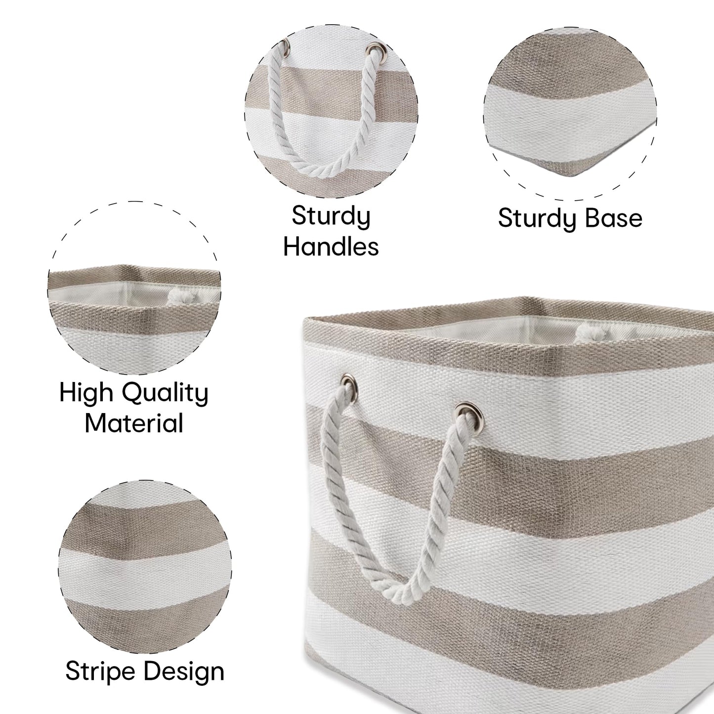Anko Paper cloth Foldable Storage Basket with Non-Woven Fabric Lining | Sturdy Durable Fabric | Striped Storage organiser with Carry Handles for Saree, Shirts, Woolens, Books, Toys