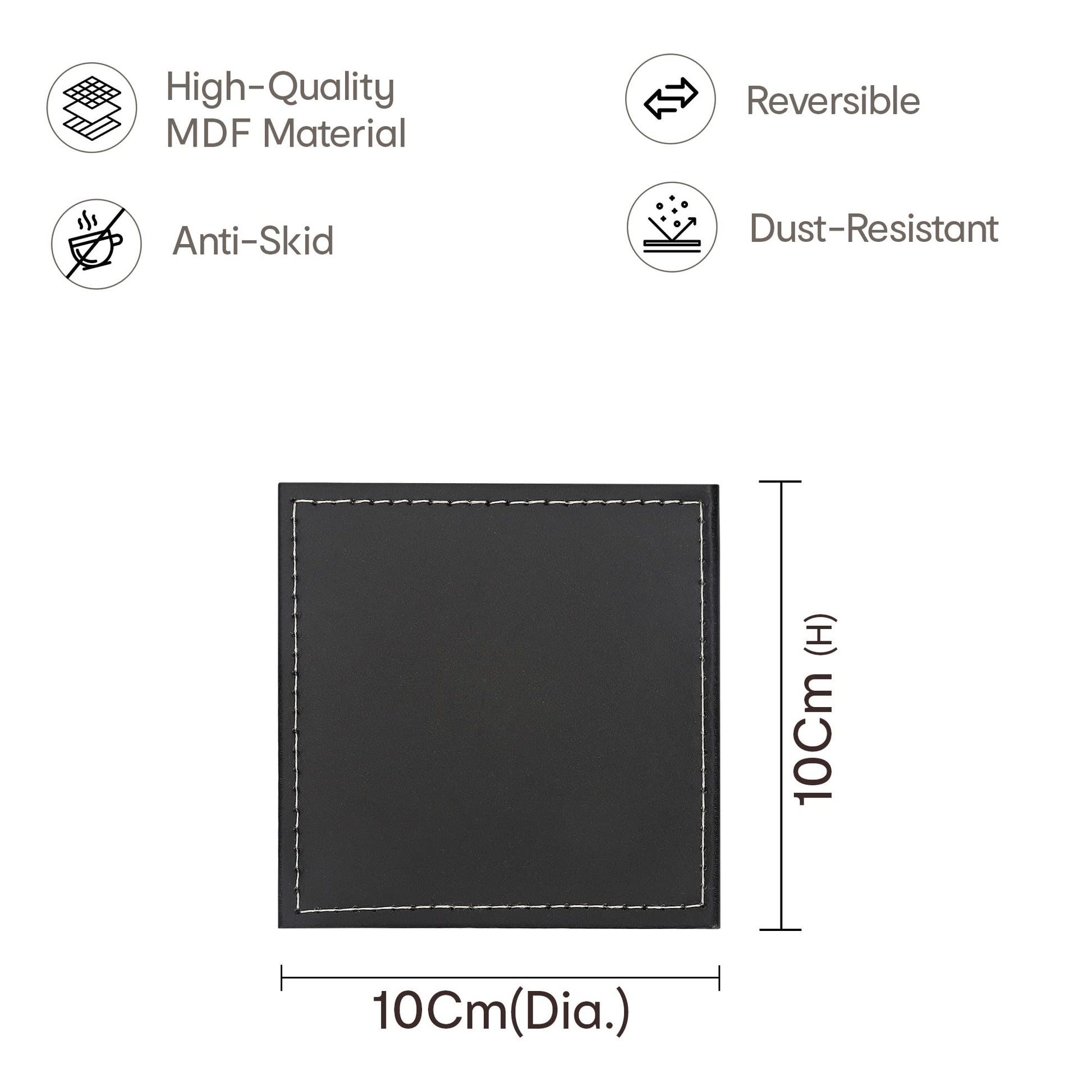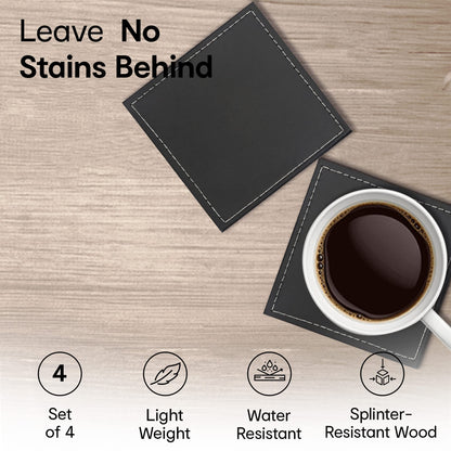 Set of 4: Reversible Acacia Wood Tea/Coffee Coasters - Stain & Heat Resistant | 10cm Dia | Natural