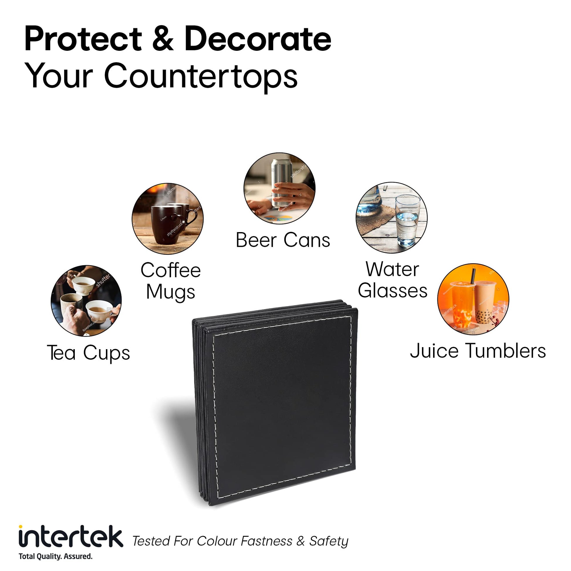 Ceramic Coasters Set of 6 (Dia - 10cm, 8mm Thick) | Dining Table Decor Accessories | Cups/Coffee Mugs/Glasses Coaster Set | Glass Cover Lid | Kitty Party Return Gifts for Women (Multicolor)
