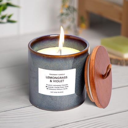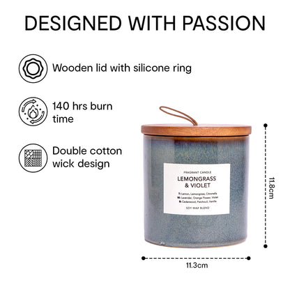 Reactive Blue Fragrant Candle | Lemongrass and Violet Scent | Double Wick, Ceramic Vessel | Home Decor, Relaxation, Indoor Use Only | 11.8cm (H) x 11.3cm (Dia.)