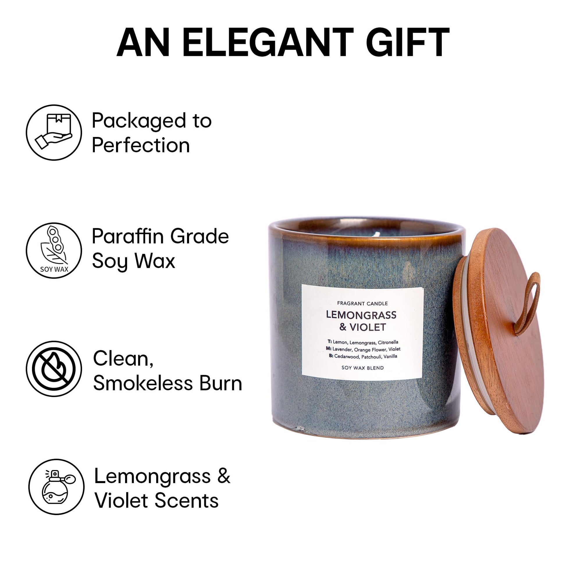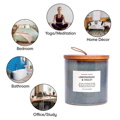 • Invigorating Aroma: Immerse yourself in the refreshing blend of lemongrass and violet, filling your space with a calming fragrance that promotes relaxation.