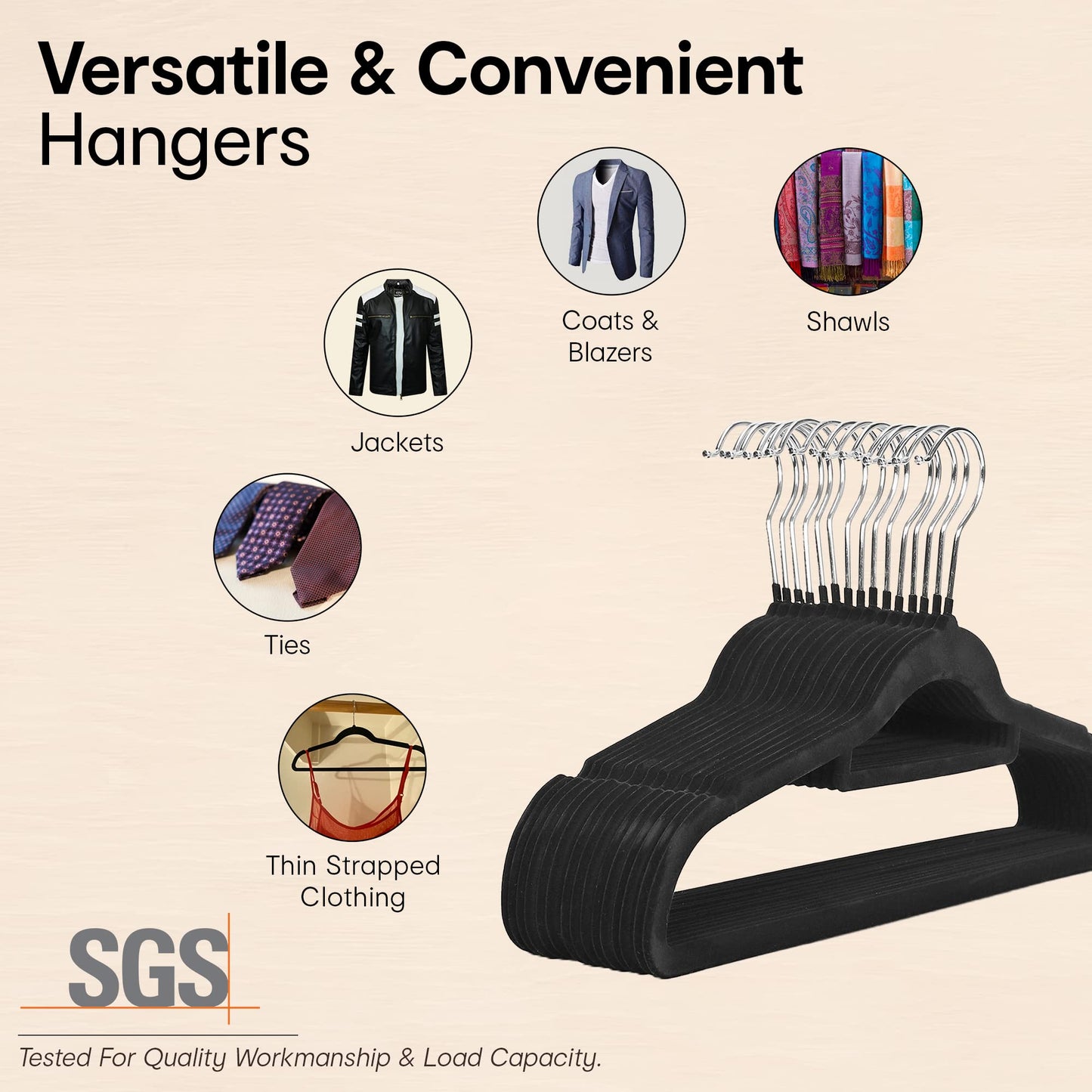 - STYLISH FINISH: Featuring a soft, luxurious velvet texture and a sleek curved design, these hangers accommodate various types of clothing, from delicate tops to heavier outerwear, without causing stretching or slipping.