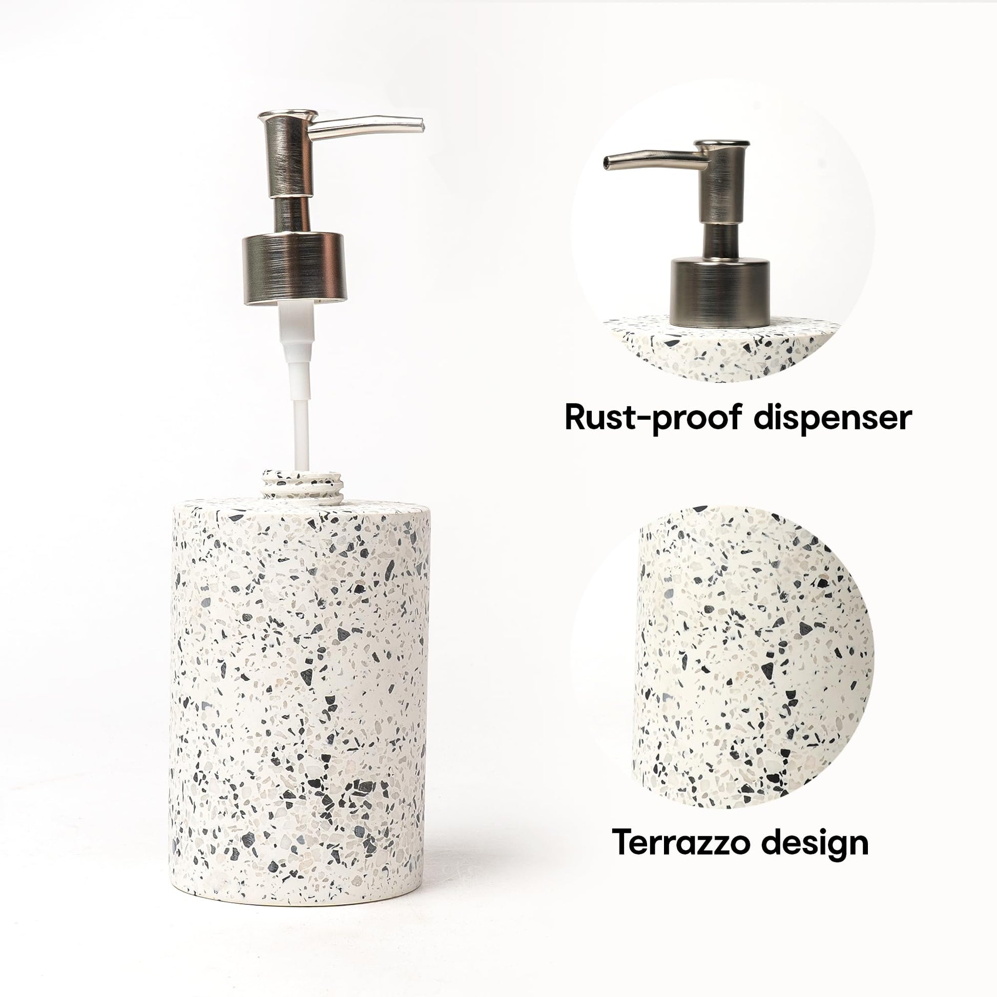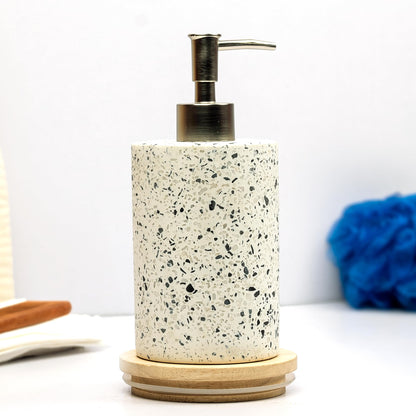 Terazzo Liquid Soap Dispenser | Stoneware | Bathroom Sanitizer, Lotion, Shampoo Dispenser | Ceramic Liquid Soap Dispenser for Bathroom, Kitchen, Wash Basin | Bathroom Accessories | 18 x 7cm
