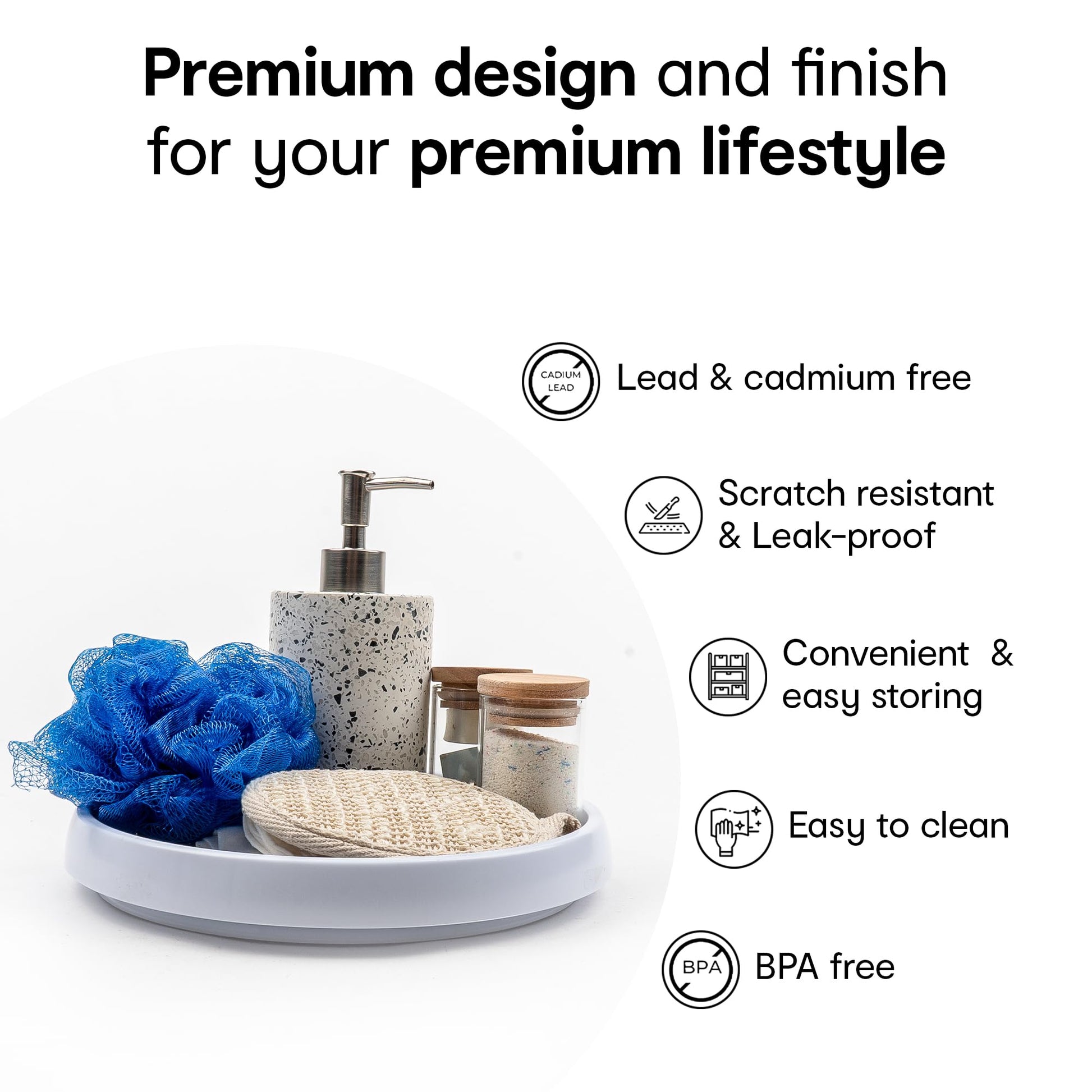 Say goodbye to mess with the Anko Terazzo Dispenser's high-quality polypropylene (PP) sprayer and tube. Its efficient design allows for easy and convenient dispensing of soap, lotion, or shampoo with just a simple press.