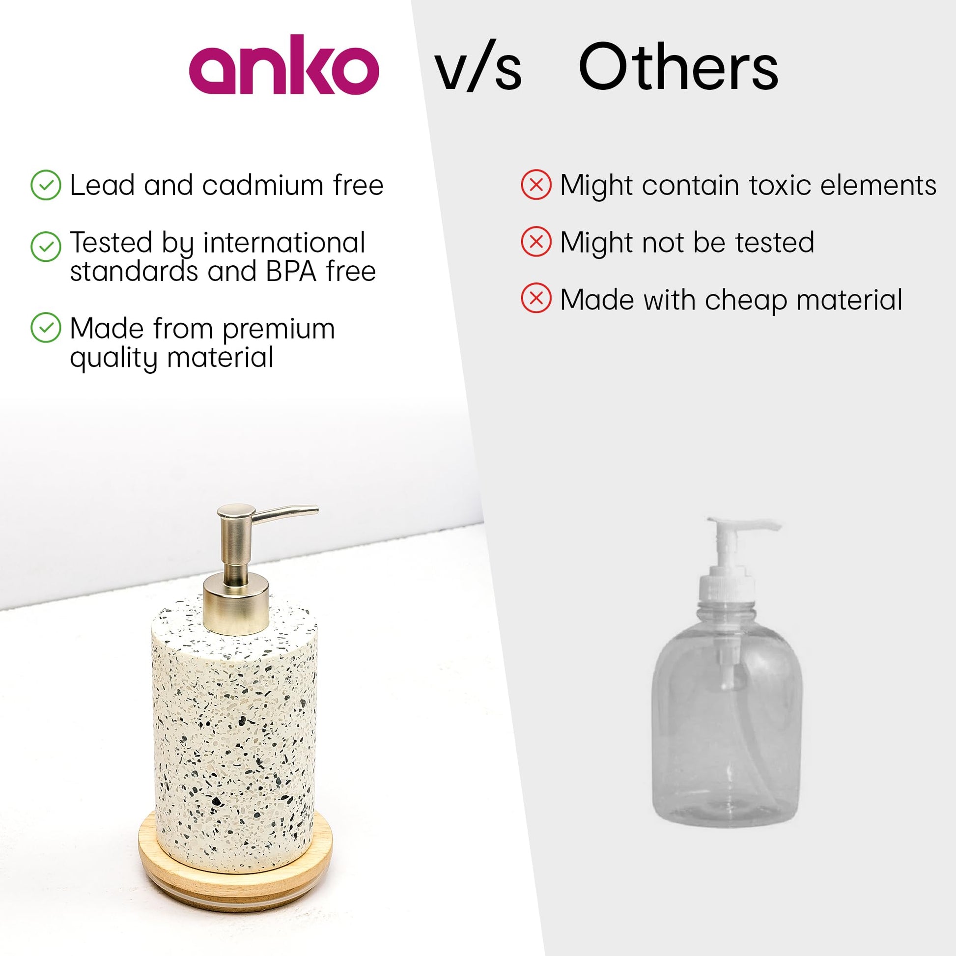 Crafted from high-quality polyresin and stone, the Anko Terazzo Liquid Soap Dispenser is built to last. Enjoy the luxurious feel and durability that these premium materials offer, ensuring it remains a staple in your home for years to come.