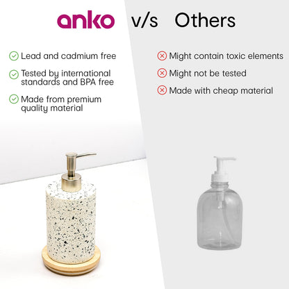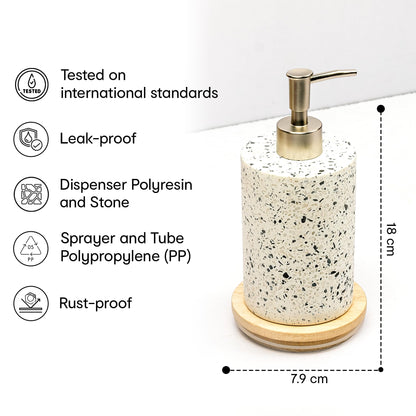 Anko Terazzo Liquid Soap Dispenser | Stoneware | Bathroom Sanitizer, Lotion, Shampoo Dispenser | Ceramic Liquid Soap Dispenser for Bathroom, Kitchen, Wash Basin | Bathroom Accessories | 18 x 7cm