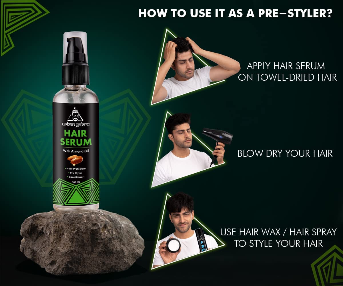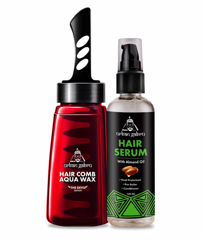 Urbangabru Hair Comb Aqua Wax (260 ML) & Pre- Styler Hair Serum for Men (100 ML) - Mens Grooming Combo Kit