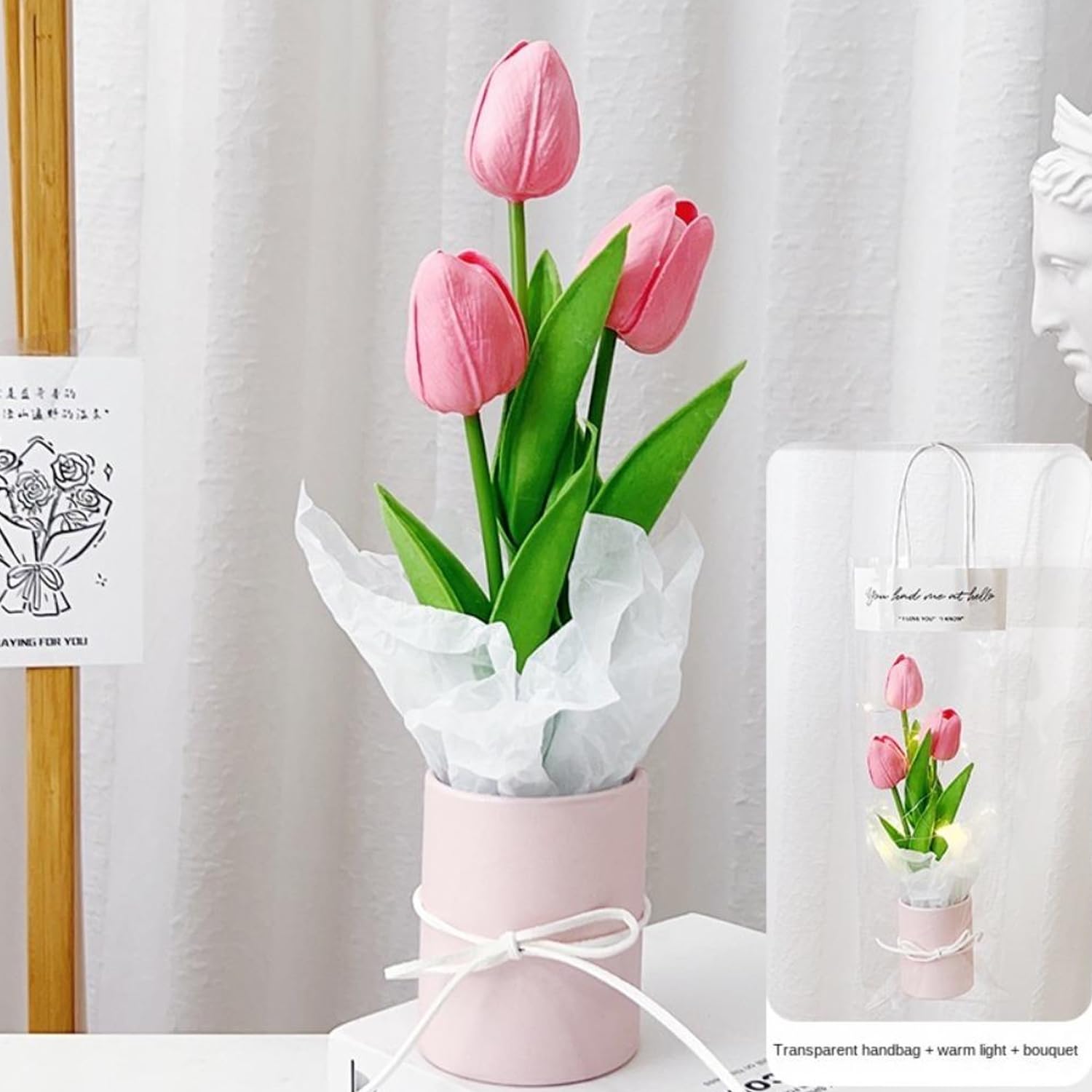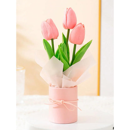 Realistic Tulip Flower Vase Pot with Artificial Flowers & Gift Wrap for Home Decoration | Guldasta Flower Pots with Artificial Show Flower for Living Room, Dining Table, Bedroom & Gifting