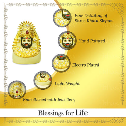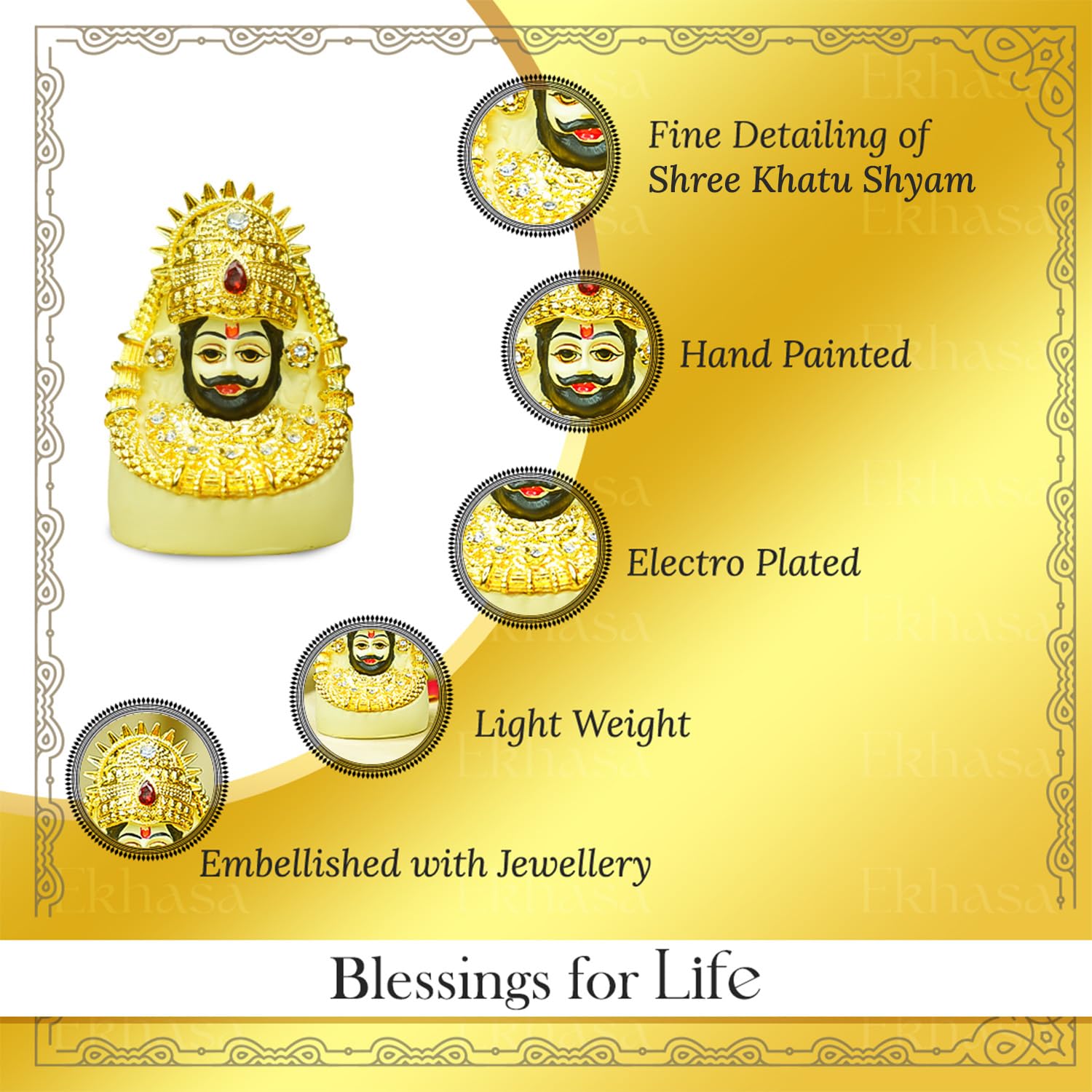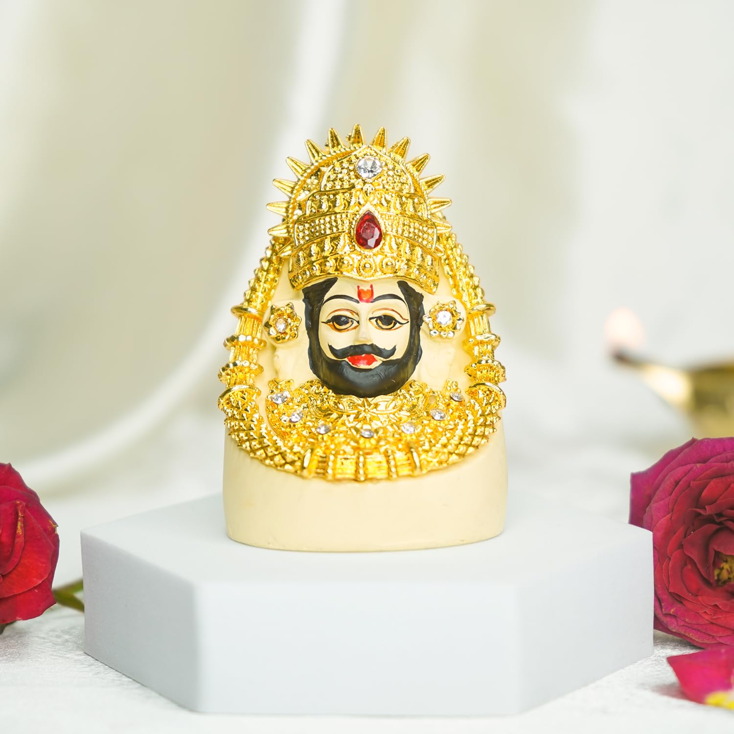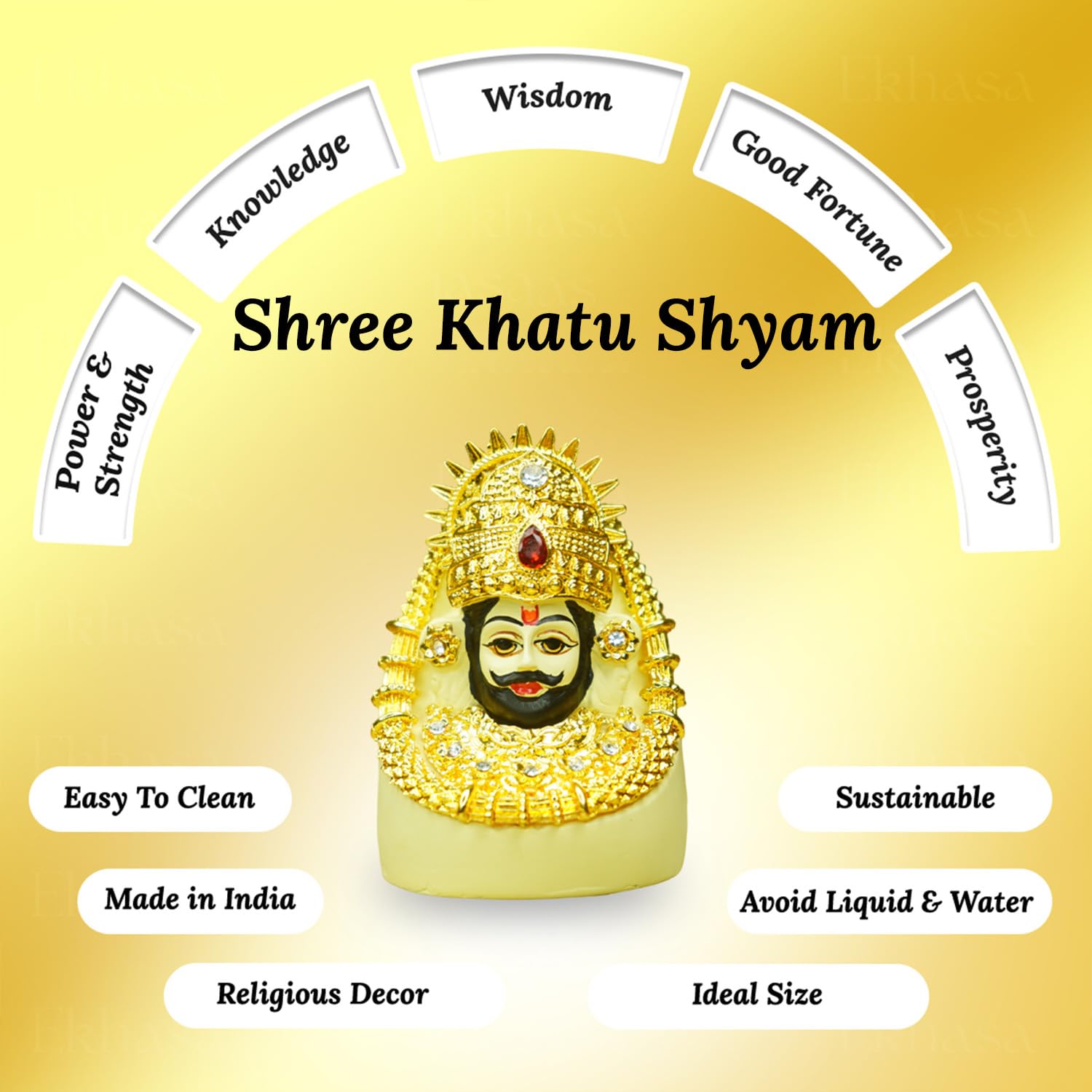 This stunning Khatu Shyam Ji Murti is perfect for spirituality enthusiasts, collectors, and anyone looking to beautify their living or working space.