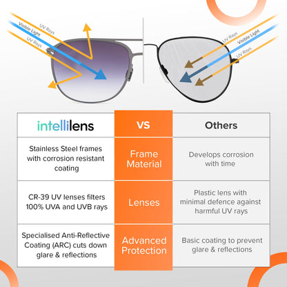 Intellilens | Branded Latest and Stylish Sunglasses | 100% UV Protected | Light Weight, Durable, Premium Looks | Men & Women | Grey Lenses | Pilot | Medium