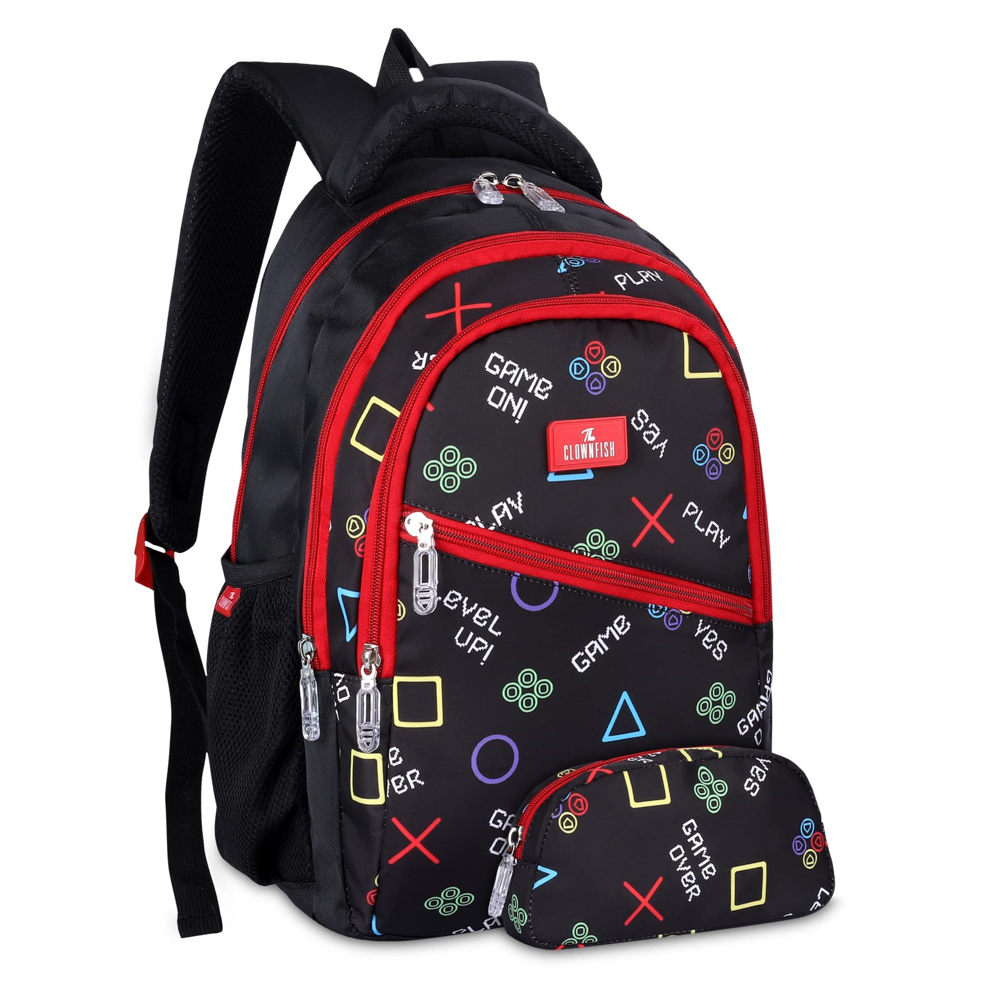 Introducing the Brainbox Series 30L School Backpack by Clownfish, your child's perfect companion for school. This durable and stylish backpack is made from high-quality polyester material and features a spacious 30L capacity, making it ideal for carrying school essentials. It comes with a convenient pencil pouch to keep stationery organized. The backpack has dimensions of 30(L) x 23(W) x 43(H) cm, while the pencil pouch measures 22(L) x 5(W) x 12(H) cm. With vibrant and colorful patterns, it appeals to children aged 8-10 years. From comfortable cushioned shoulder straps to three compartments for easily organizing books and supplies, your child will be ready for school or any adventure!