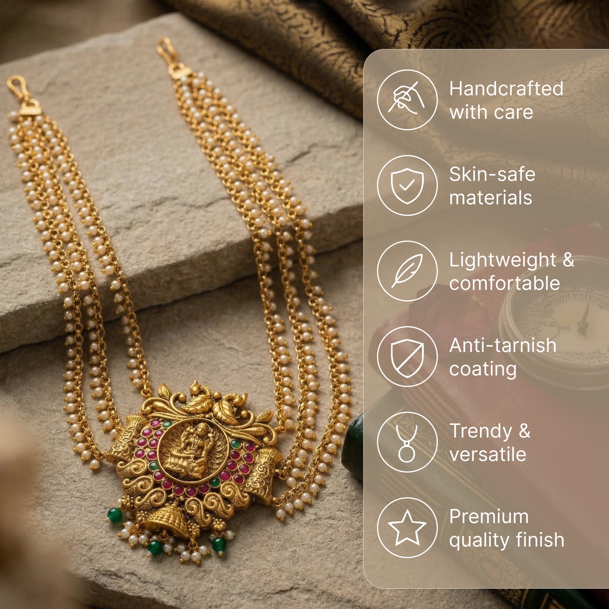 • TRADITIONAL BRIDAL STYLE: Antique finish and pearl chain detailing add rich ethnic and bridal elegance.