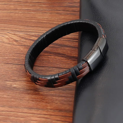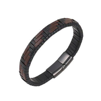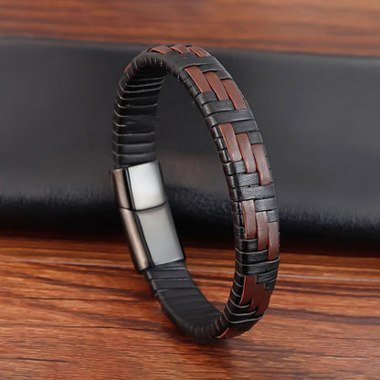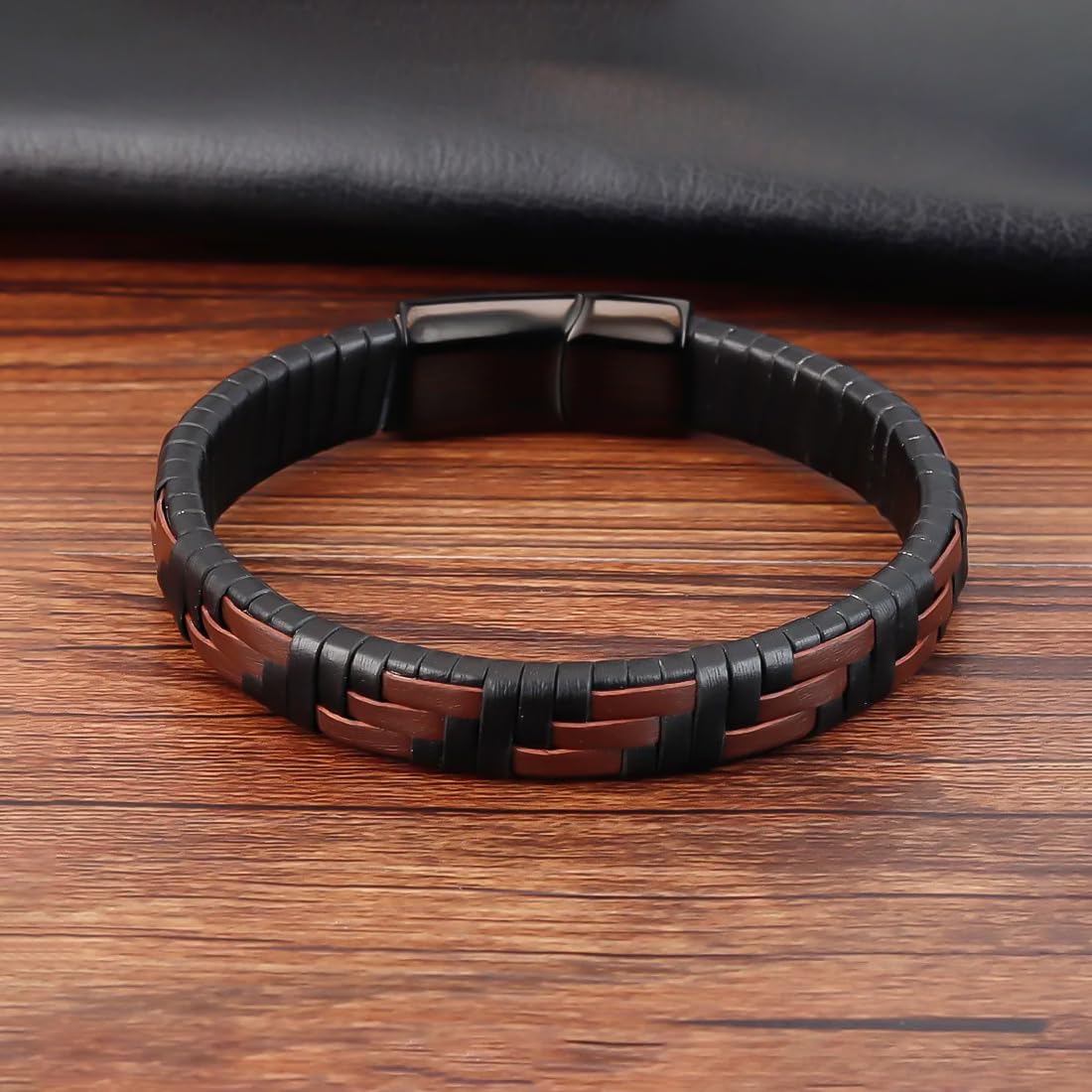 Brown Leather Bracelet: Stylish Men's Wristband with Magnetic Clasp | 21 CM | Trendy Design