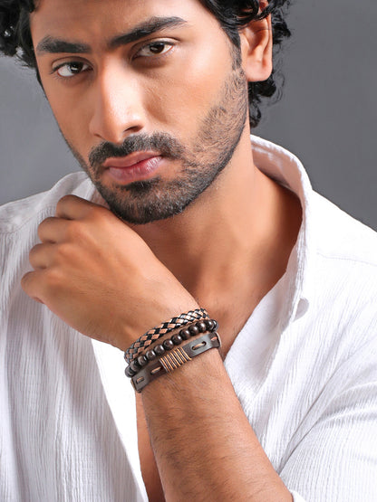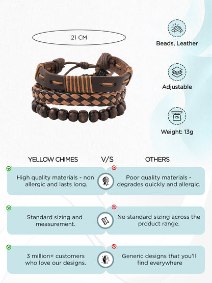 Introducing the Brown Leather Men's Bracelet by Yellow Chimes, expertly crafted from high-quality leather and beads. This stylish multilayer bracelet is designed for versatility and comfort, making it an ideal accessory for any occasion. With its natural brown hue, it perfectly complements any outfit, from casual to formal. Whether you’re dressing up for a night out, heading to work, or enjoying a casual day out, this bracelet is the perfect finishing touch. Ideal for gifting to your father, friends, or husband, it celebrates special moments together. The comfortable fit and stylish design add both elegance and sophistication to your look, making it a must-have for every man's accessory collection. It's crafted for durability while ensuring that it withstands daily wear. The one-size design fits most wrists, making it an accessible choice for everyone.