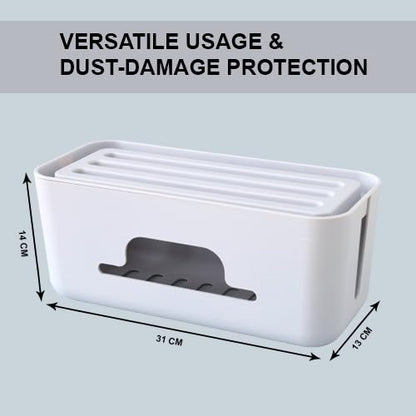 Cable Management Box: Wire Organizer for Home & Office | Grey | 31x14x13 cm