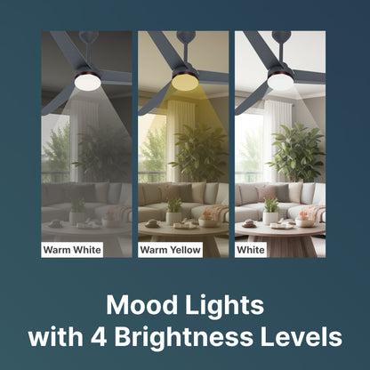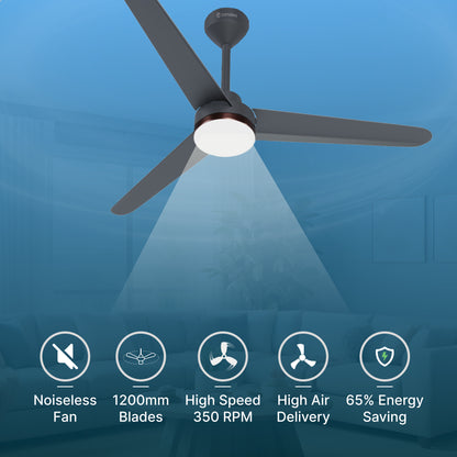 BLDC Ceiling Fan with light | 1200mm | 3-Colour LED Lights (White, Warm White & Warm Yellow) | Energy Efficient | 5-Star Rated Ceiling fan high speed | Sleek & Noiseless Operation | Grey