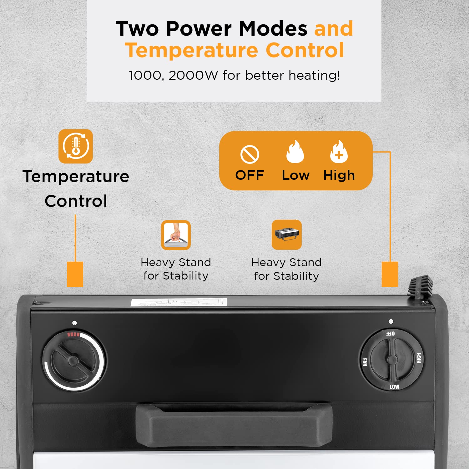 • Powerful Heating Output: Efficiently heats spaces up to 2000W capacity, perfect for any room.