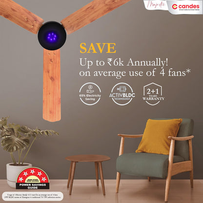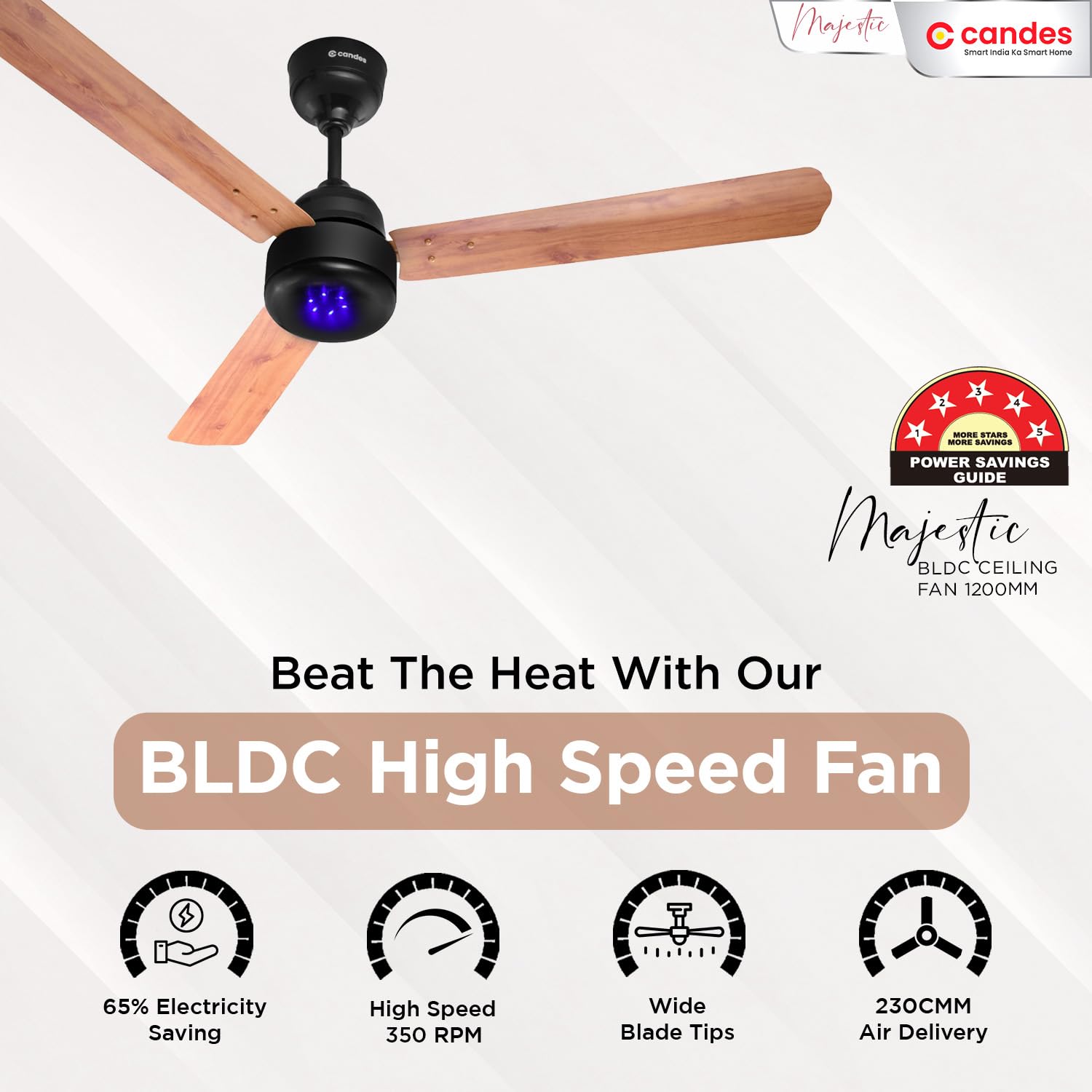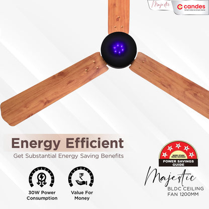 Candes Majestic BLDC LED Ceiling Fan 1200mm / 48 inch | BEE 5 Star Rated, Upto 65% Energy Saving, High Air Delivery & High Speed Ceiling Fans for Home | 2+1 Years Warranty (Wooden)