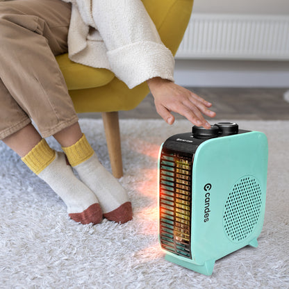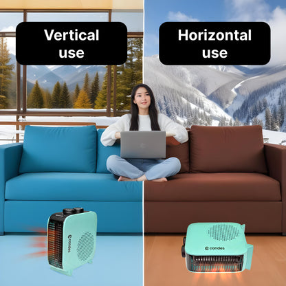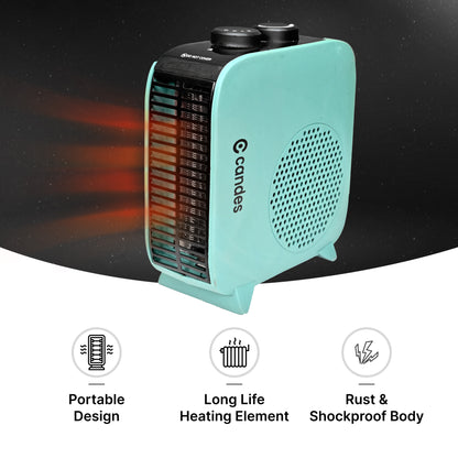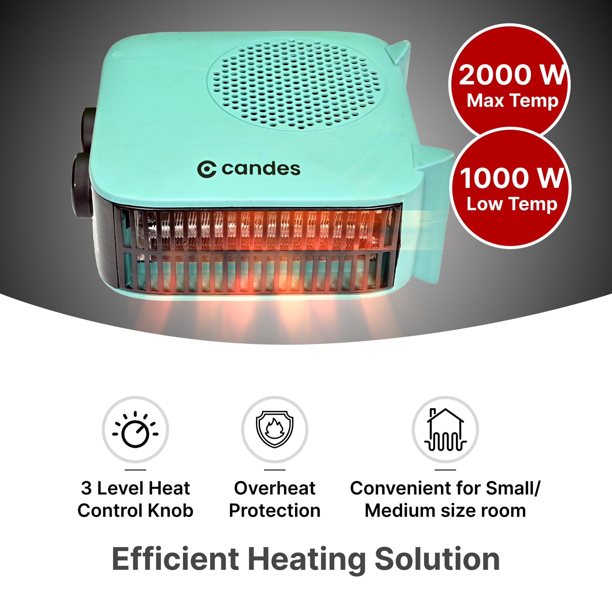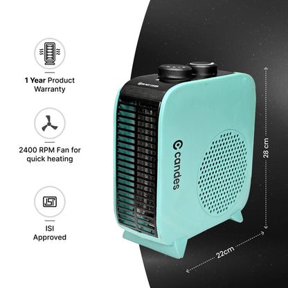 Candes Portable Room Heater for Home | 2 Heat Settings-1000W/2000W | 2400 RPM | Silent Operation | Dual Placement | ISI Certified with 1 Yr Manufacturer warranty | Light Sea Green