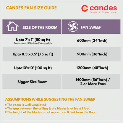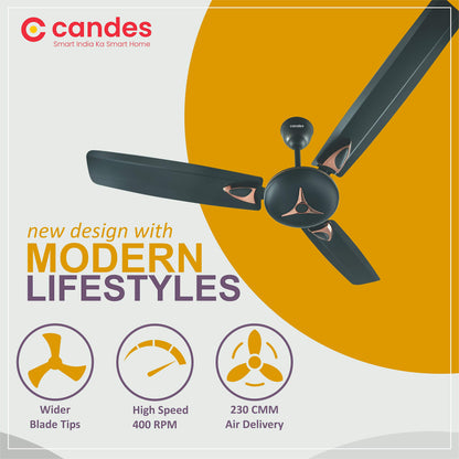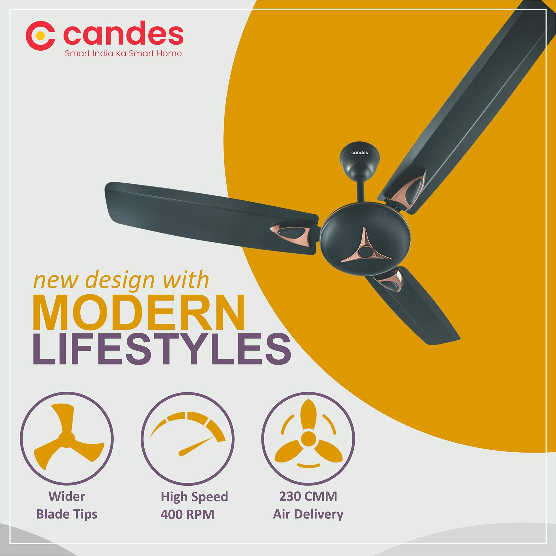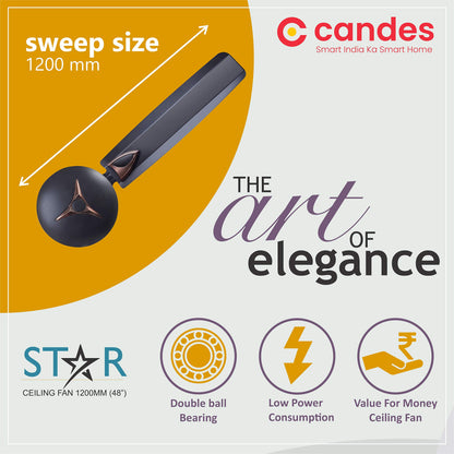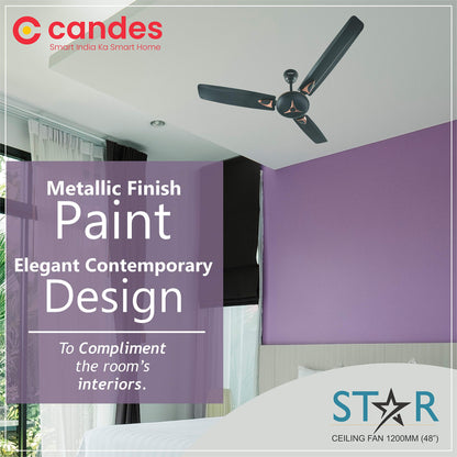 Candes Star 1200mm, 405 RPM High Speed Ceiling Fans for Home | BEE 3 Star Rated, High Air Delivery, Noiseless & Energy Efficient | 1+1 Years Warranty | Coffee Brown