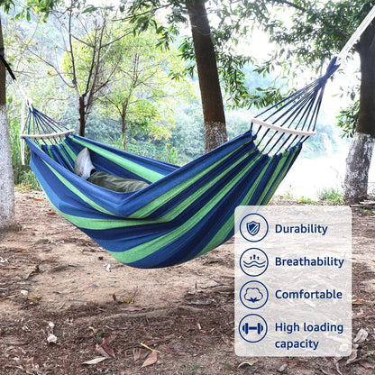 • DURABLE CANVAS MATERIAL: Engineered from high-quality canvas, this hammock withstands outdoor elements while providing a restful experience.