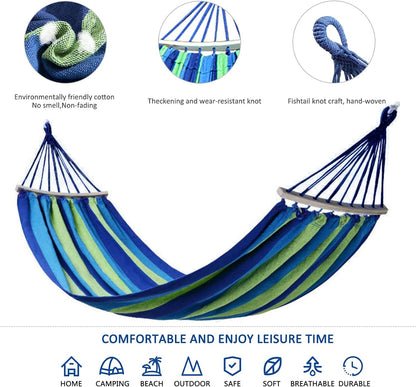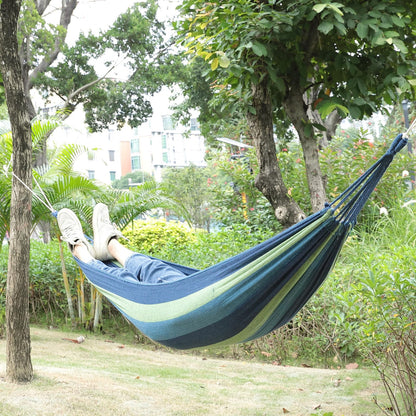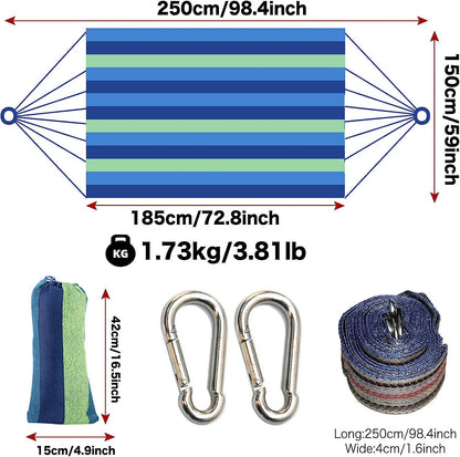 Whether you’re setting it up in your garden, enjoying a relaxing afternoon on your patio, or taking it with you on your next camping trip, this hammock is designed for various outdoor uses, adding a touch of comfort to any setting.
