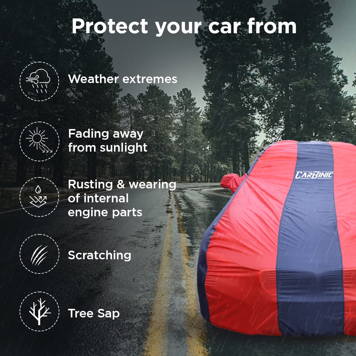 Perfect for a variety of scenarios, the CARBINIC car cover ensures your vehicle remains in pristine condition regardless of the weather conditions outside: