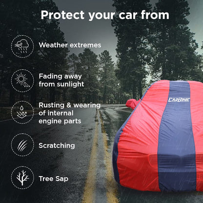 CARBINIC Car Cover for MG Hector 2022 Water Resistant (Tested) & Dustproof Custom Fit UV Heat Resistant Outdoor Protection with Triple Stitched Fully Elastic Surface (Blue & Red)