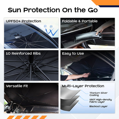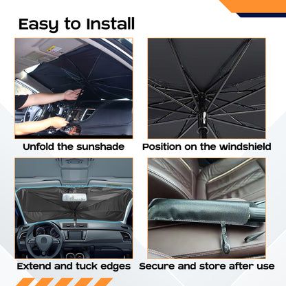 Designed for urban drivers who regularly park their cars under the harsh sun, this versatile sun shade is also effective during travel, ensuring your dashboard stays cool and protected. Perfect for keeping pets comfortable in your vehicle, it unfolds effortlessly like an umbrella, making it a breeze to set up and take down.