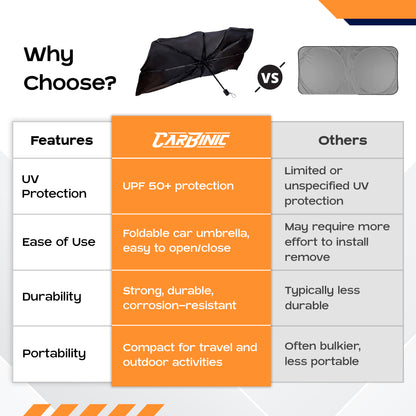 Introducing the CARBINIC Car Sun Shade Protector, an essential product for your vehicle's protection against the sun. Measuring an impressive 140x79 cm, this single sun shade is crafted from durable iron and polyester materials, featuring innovative Ti-coating for enhanced UPF50+ defense against harmful UV rays and heat.
