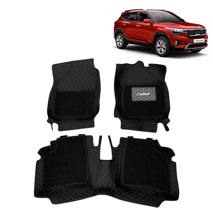 CARBINIC 7D Car Mats | Compatible for Kia Seltos 2019 | 7-Depth Layer Protection Car Floor Mats Anti Skid | Car Accessories | Detachable Layer of Curly Mat | Premium Double Stitched Leather Mats