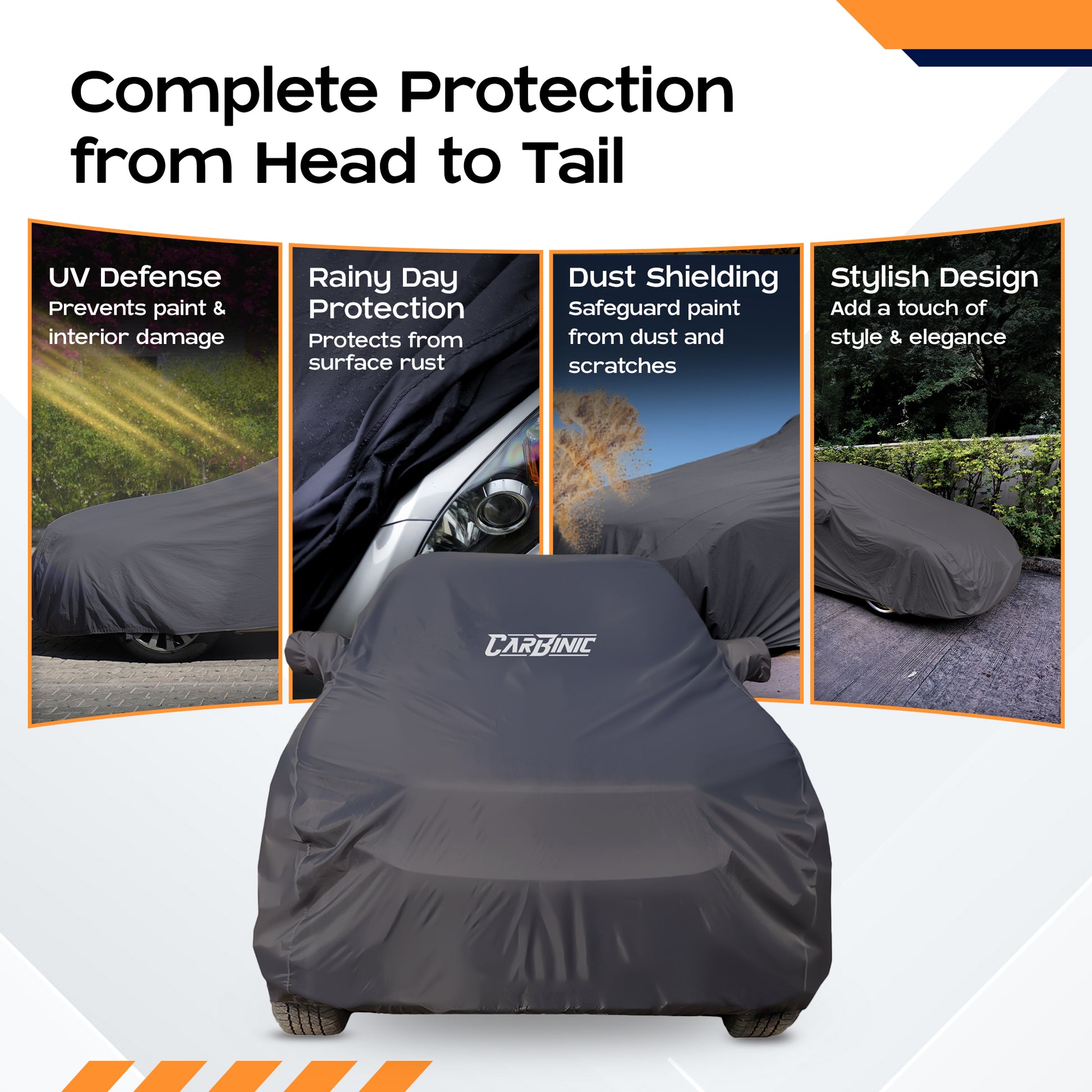 • WATER RESISTANT & UV PROOF: The CARBINIC cover not only offers a stylish look in grey, but it is designed with features that combat UV rays while providing excellent water resistance.