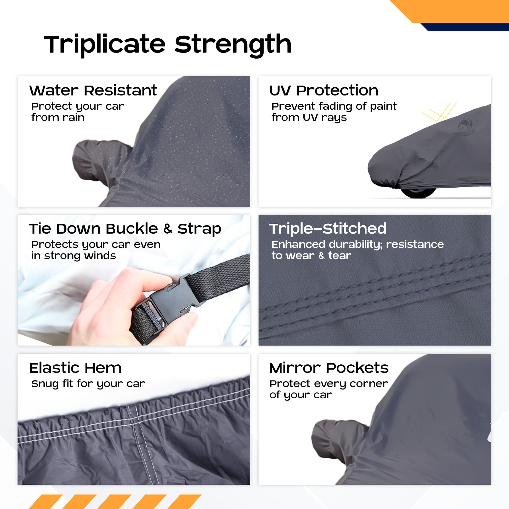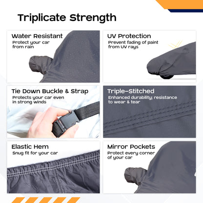 • ALL-WEATHER PROTECTION: It safeguards your vehicle against diverse elements such as dust, animal droppings, and scratches, ensuring that it remains in pristine condition.