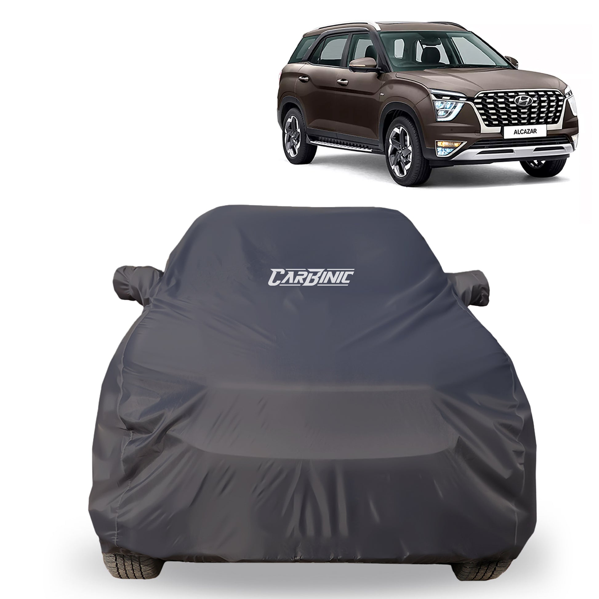 CARBINIC Car Body Cover for Hyundai Alcazar 2021 | Water Resistant, UV Protection Car Cover | Scratchproof Body Shield | Dustproof All-Weather Cover | Mirror Pocket & Antenna | Car Accessories