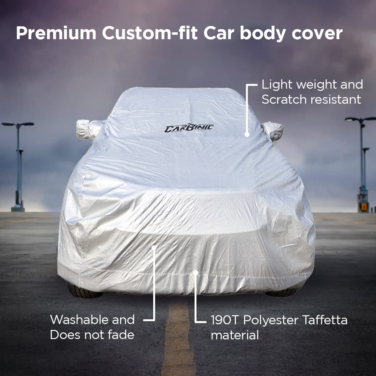 CARBINIC Car Body Cover for KIA Carens 2022 | Water Resistant, UV Protection Car Cover | Scratchproof Body Shield | Dustproof All-Weather Cover | Mirror Pocket & Antenna | Car Accessories, Silver