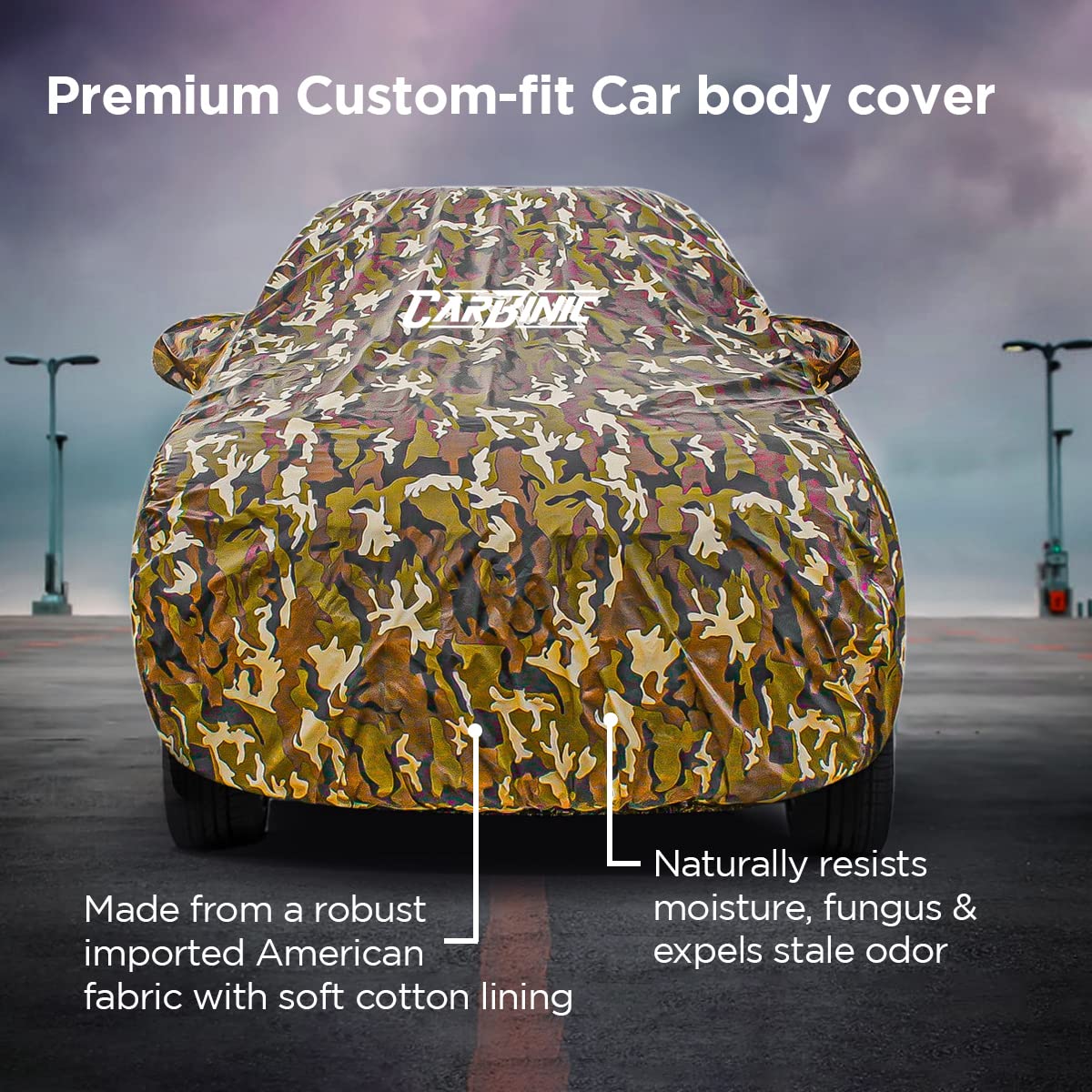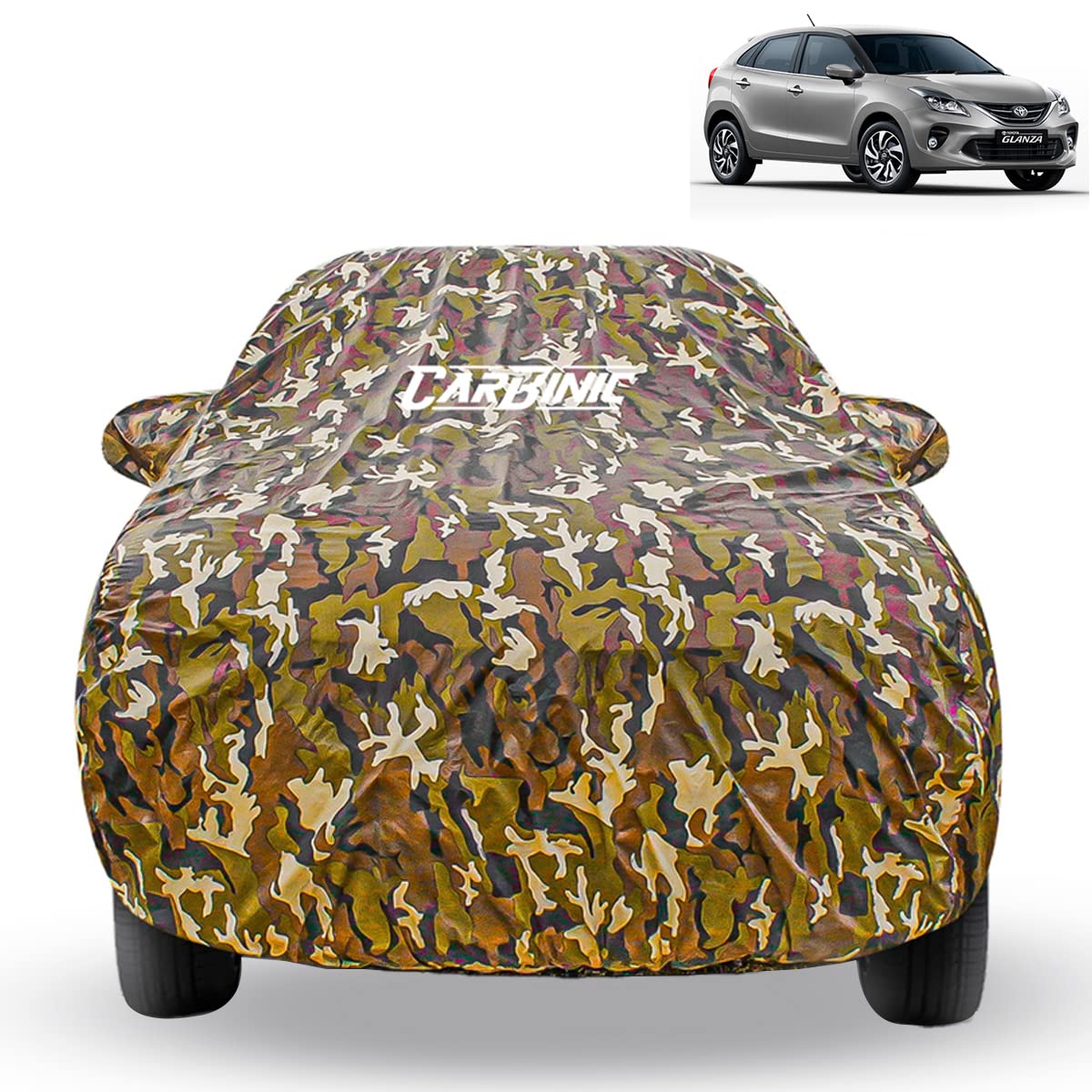 CARBINIC Car Cover for Toyota Glanza 2022 Waterproof (Tested) and Dustproof Custom Fit UV Heat Resistant Outdoor Protection with Triple Stitched Fully Elastic Surface (Jungle)