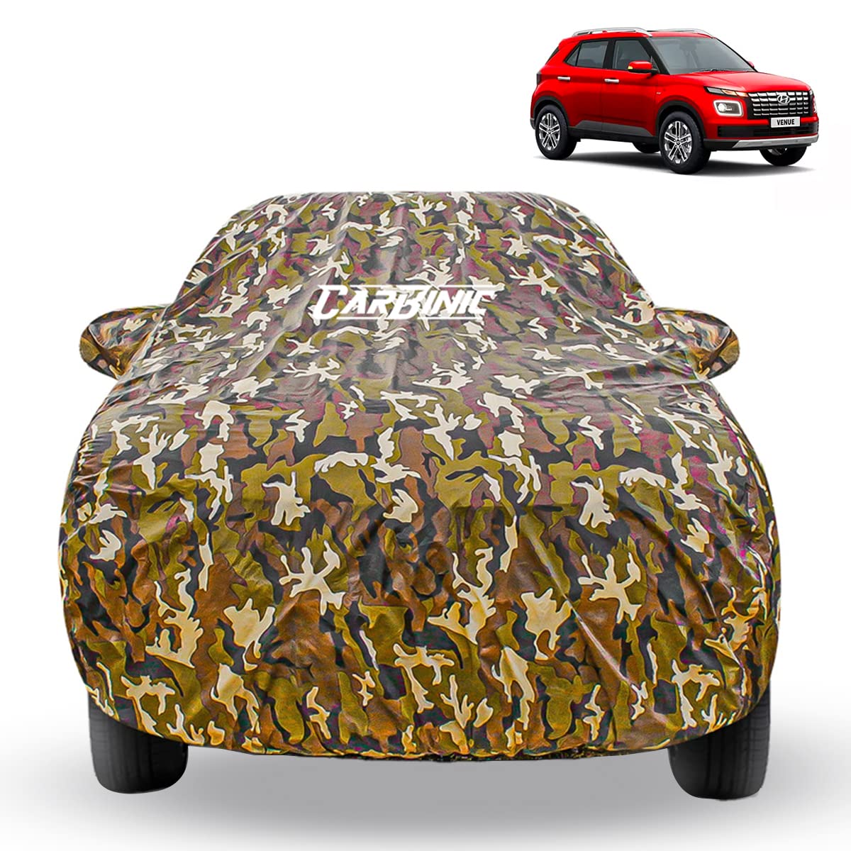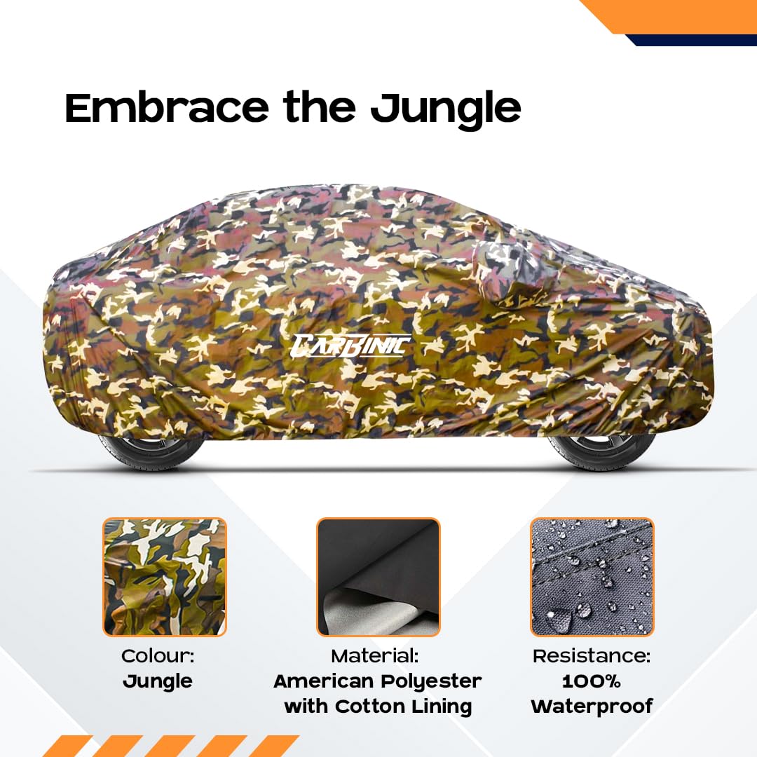CARBINIC Waterproof Car Body Cover for Hyundai Venue 2019 | Dustproof, UV Proof Car Cover | Venue Car Accessories | Mirror Pockets & Antenna Triple Stitched | Double Layered Soft Cotton Lining, Jungle