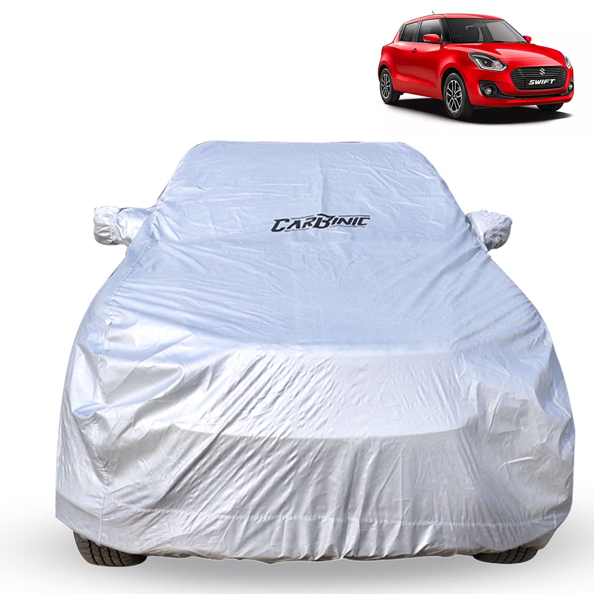 CARBINIC Waterproof Car Body Cover for Maruti Swift 2018 | Dustproof, UV Proof Car Cover | Swift Car Accessories | Mirror Pockets & Antenna Triple Stitched | Double Layered Soft Cotton Lining, Silver
