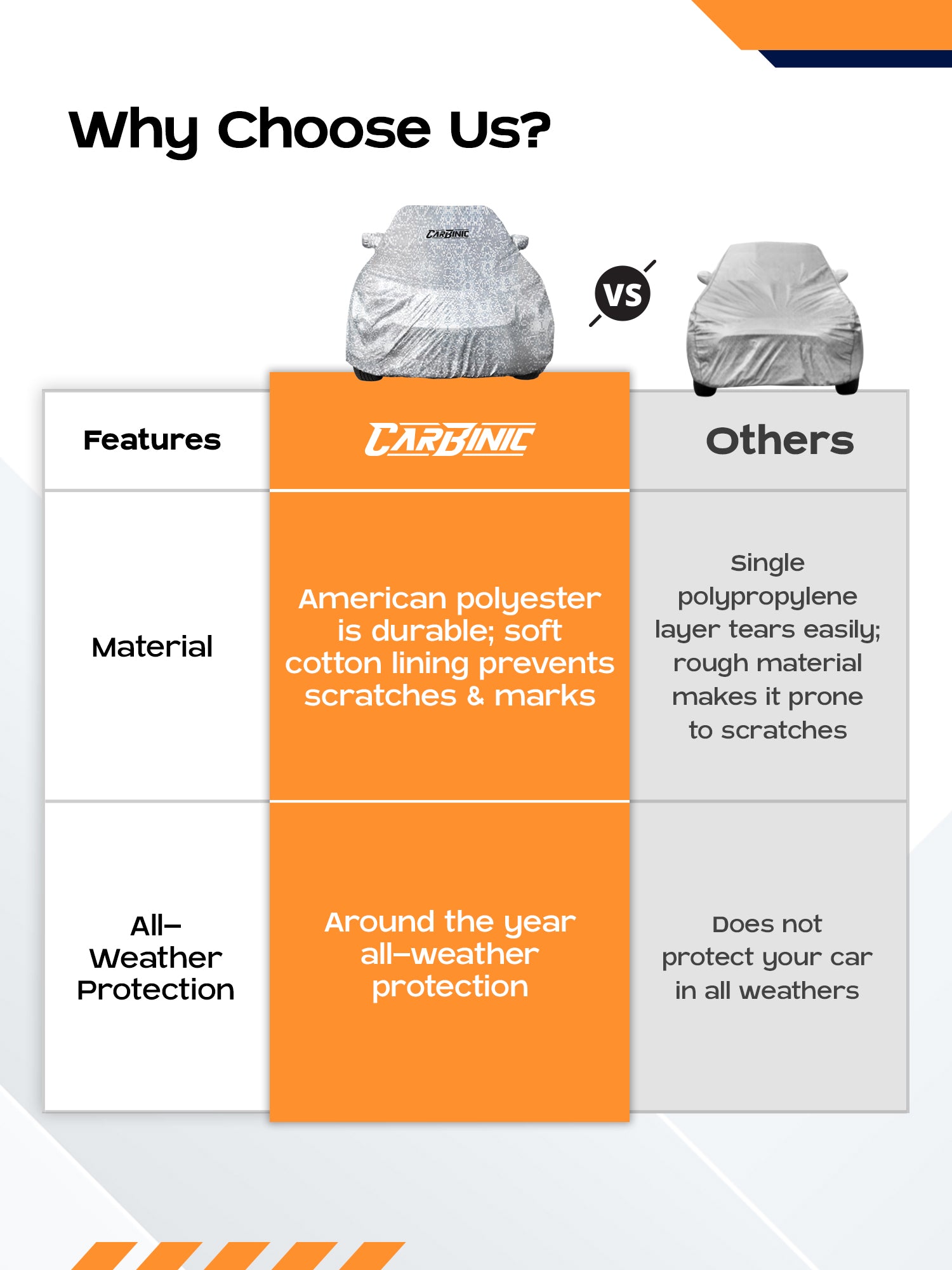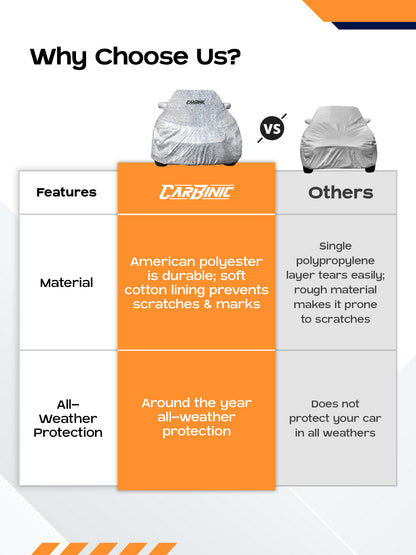 Whether you're a seasoned car owner, a newbie, or simply someone who cherishes their vehicle, the CARBINIC Waterproof Car Body Cover is a must-have accessory for maintaining the beauty and longevity of your car. Drive in style and confidence knowing your vehicle is safe from external threats!
