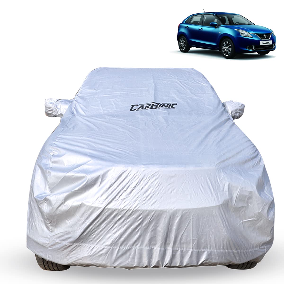 CARBINIC Car Body Cover for Maruti Brezza 2022 | Water Resistant, UV Protection Car Cover | Scratchproof Body Shield | Dustproof All-Weather Cover | Mirror Pocket & Antenna | Car Accessories, Silver
