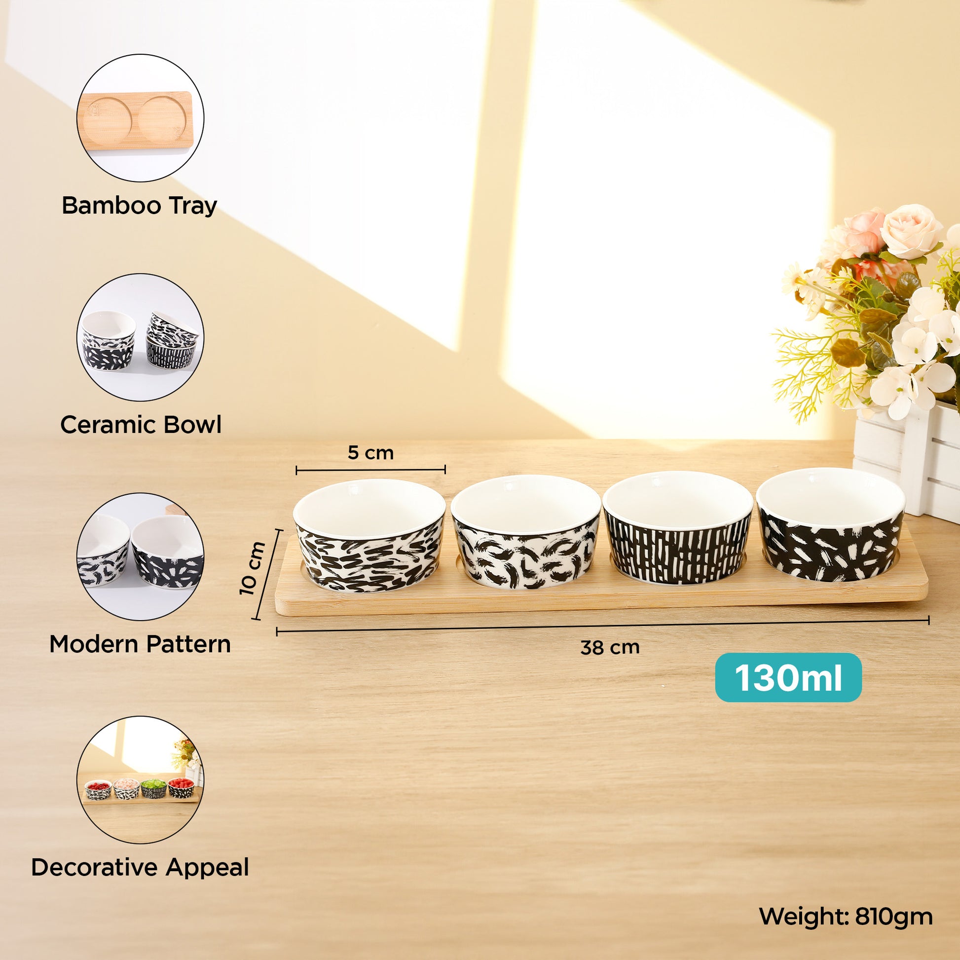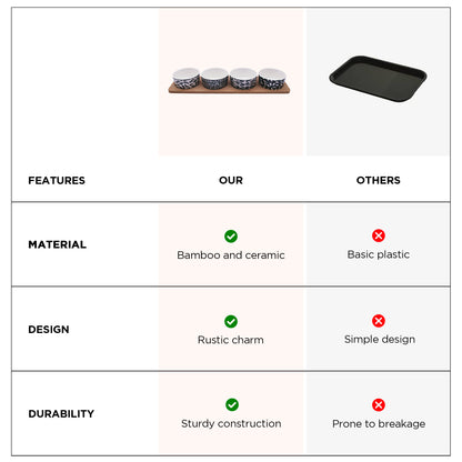 • GREAT PERFORMANCE: Enjoy the ideal size of 130ml ceramic bowls, coupled with a functional tray for organization and presentation.
