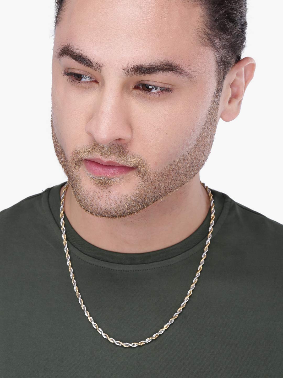 • Stylish Design: The chain features a duel tone twisted rope design that adds sophistication to any outfit.