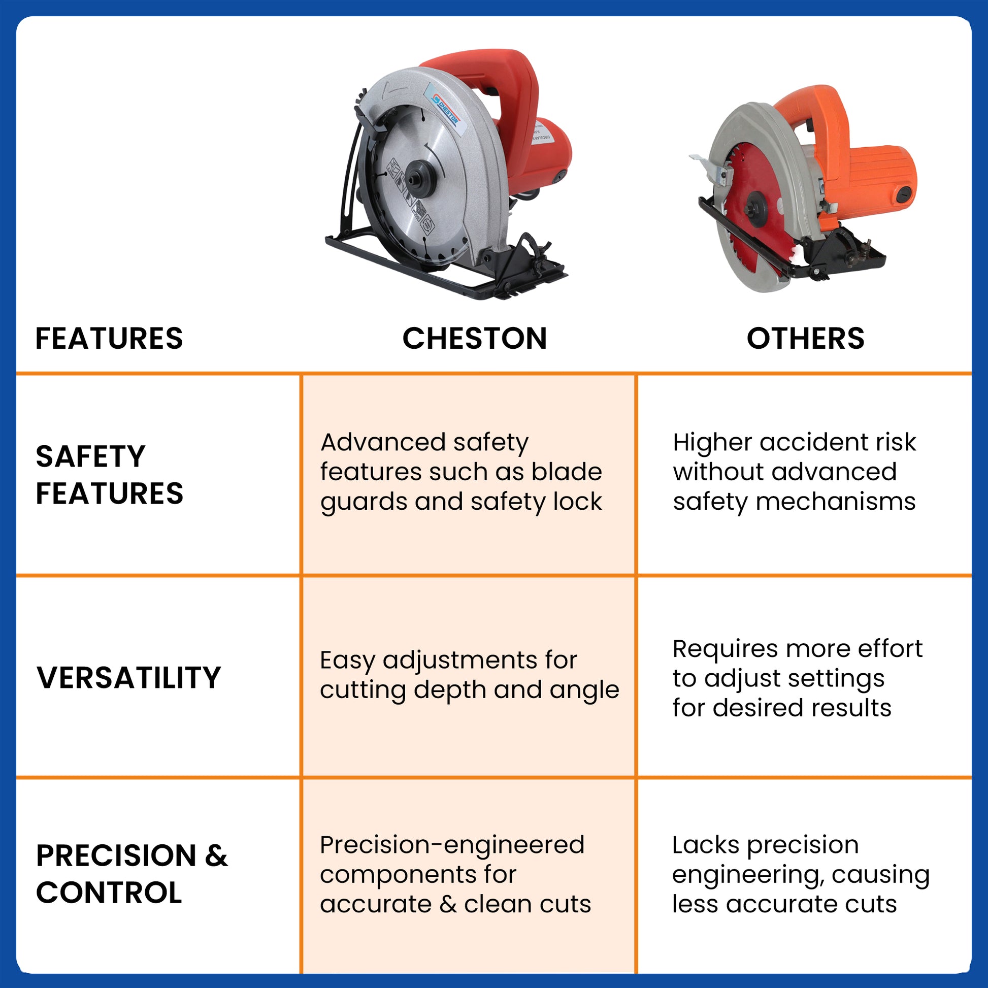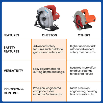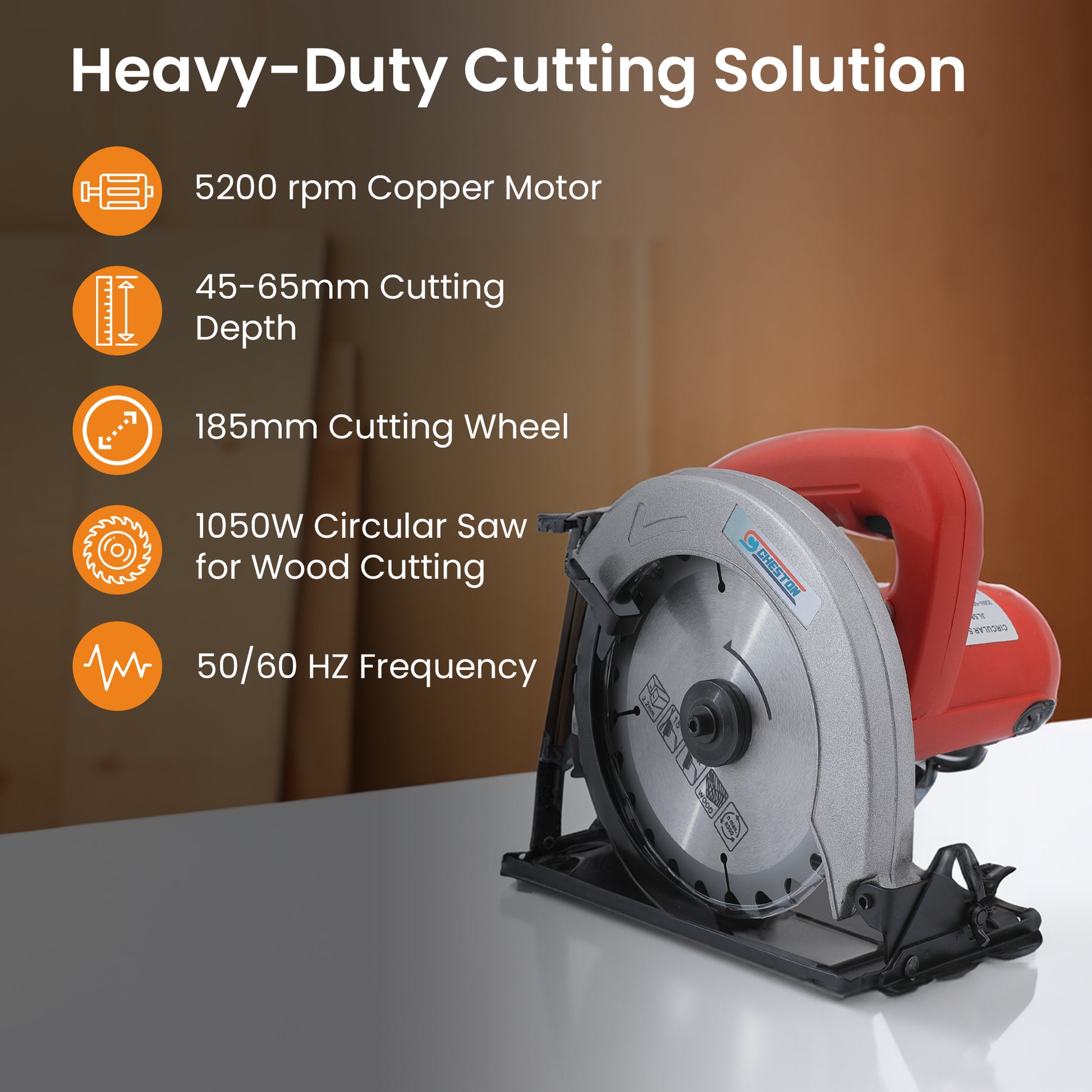 Cheston 1050W Circular Saw For Wood Cutting 185mm / 7 inch | 5200 RPM Copper Motor | 45-65 mm Cutting Depth | Durable Depth Precision Control